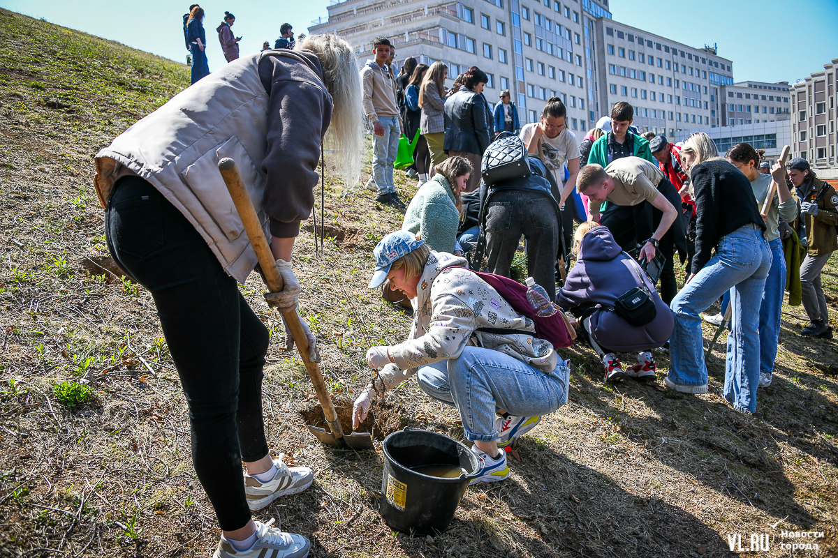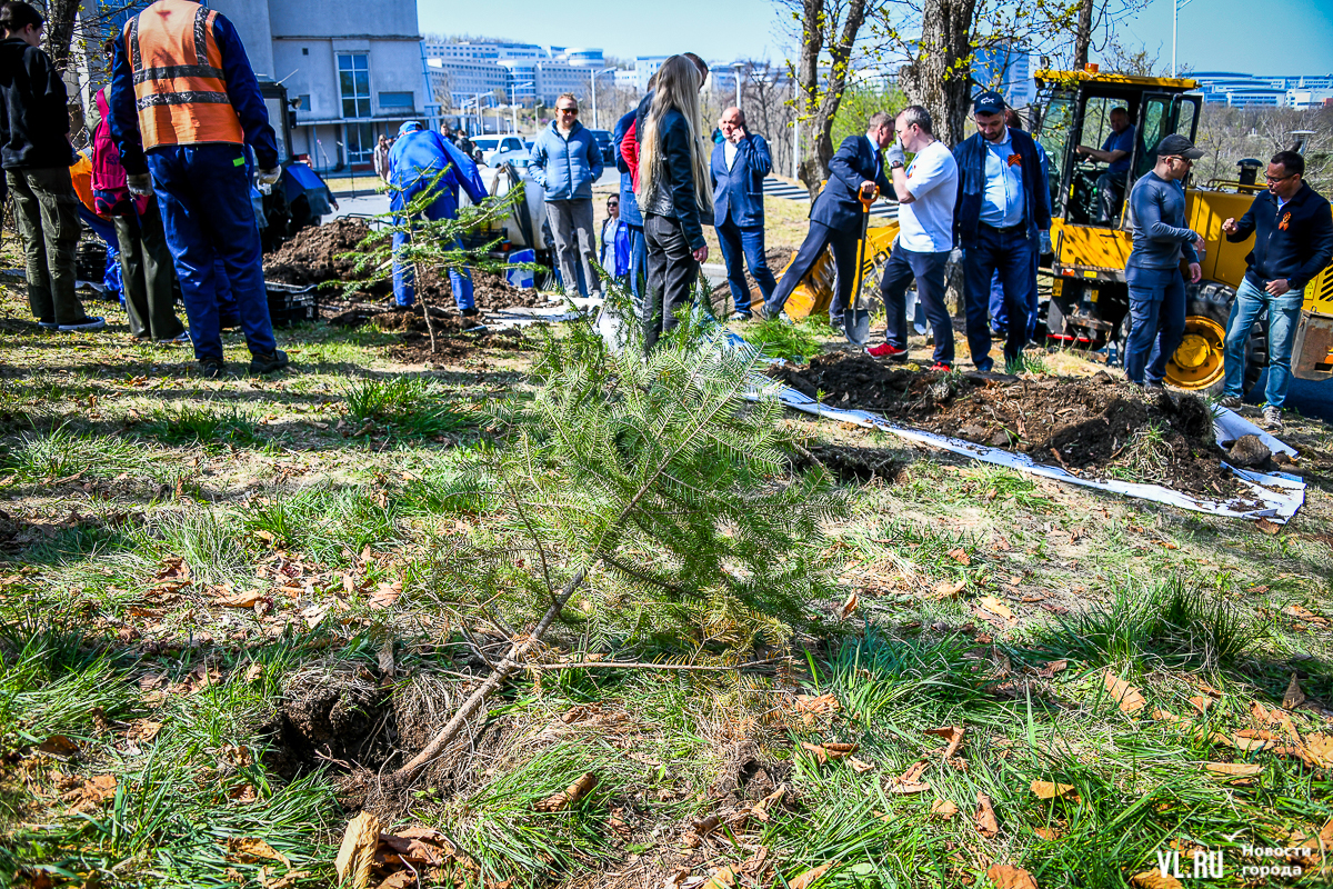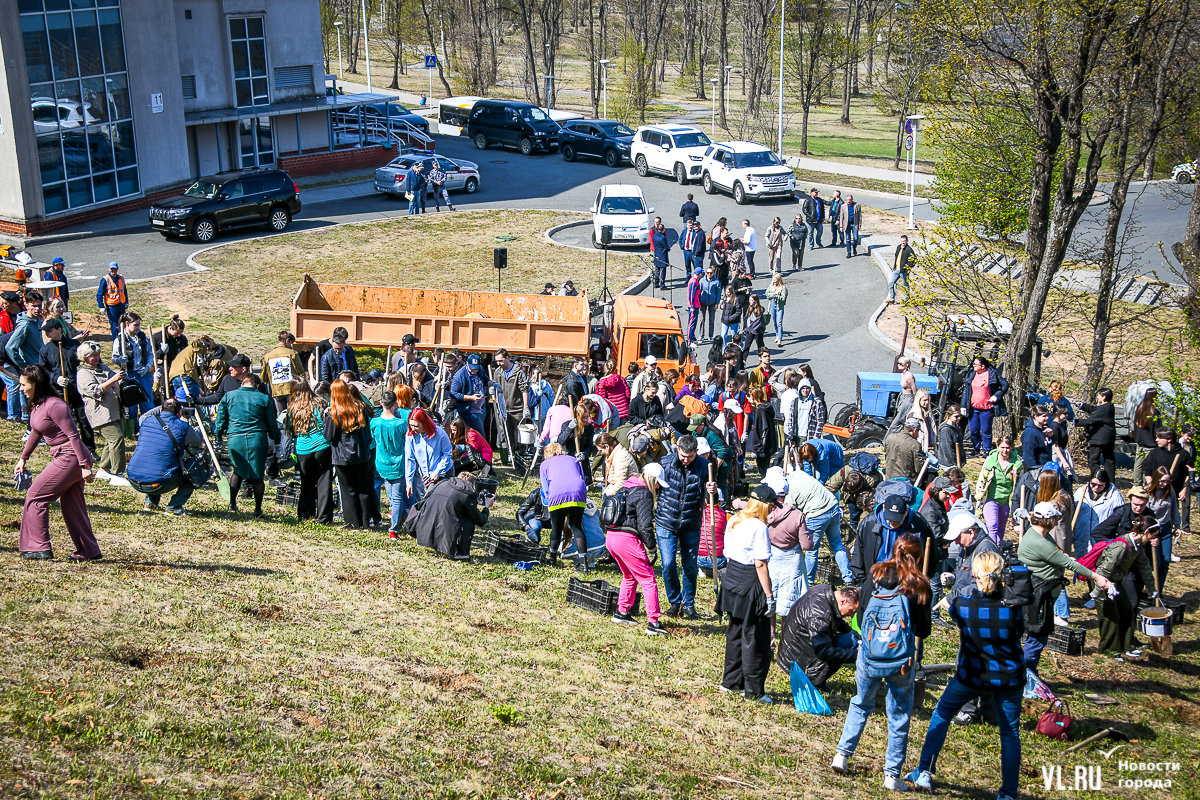 В кампусе ДВФУ во Владивостоке более 150 человек присоединились к международной акции «Сад памяти». В память о бойцах, погибших в годы Великой Отечественной войны, сегодня здесь, по словам организаторов, высадили 10 тысяч кедров и 1 тысячу абрикосов. Саженцы предоставил региональный минлесхоз, их вырастили в Ширяевском лесопитомнике (Михайловский район), а высадили на склоне у одного из гостиничных комплексов и на обширной зелёной территории, уходящей в сторону моря.