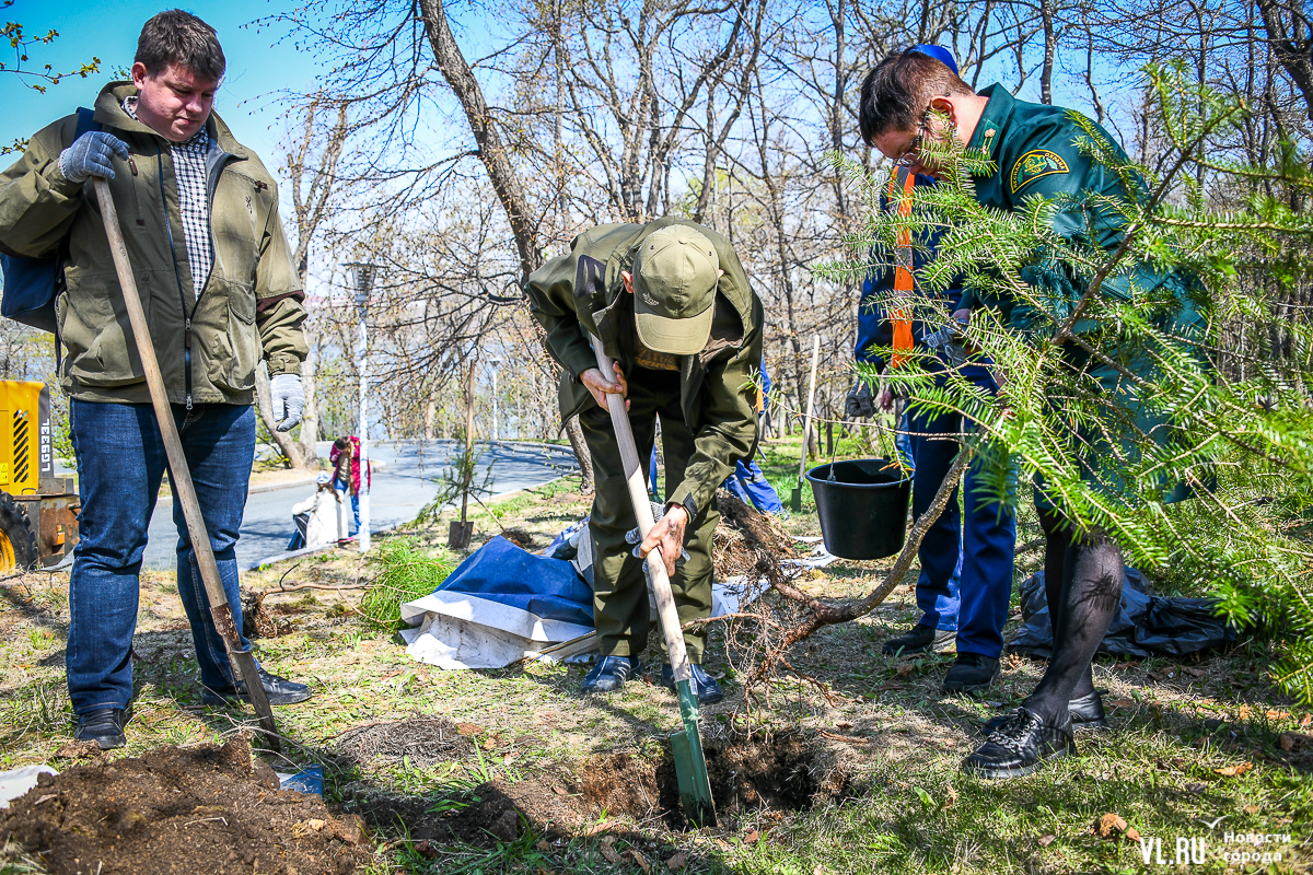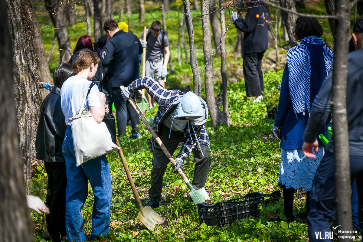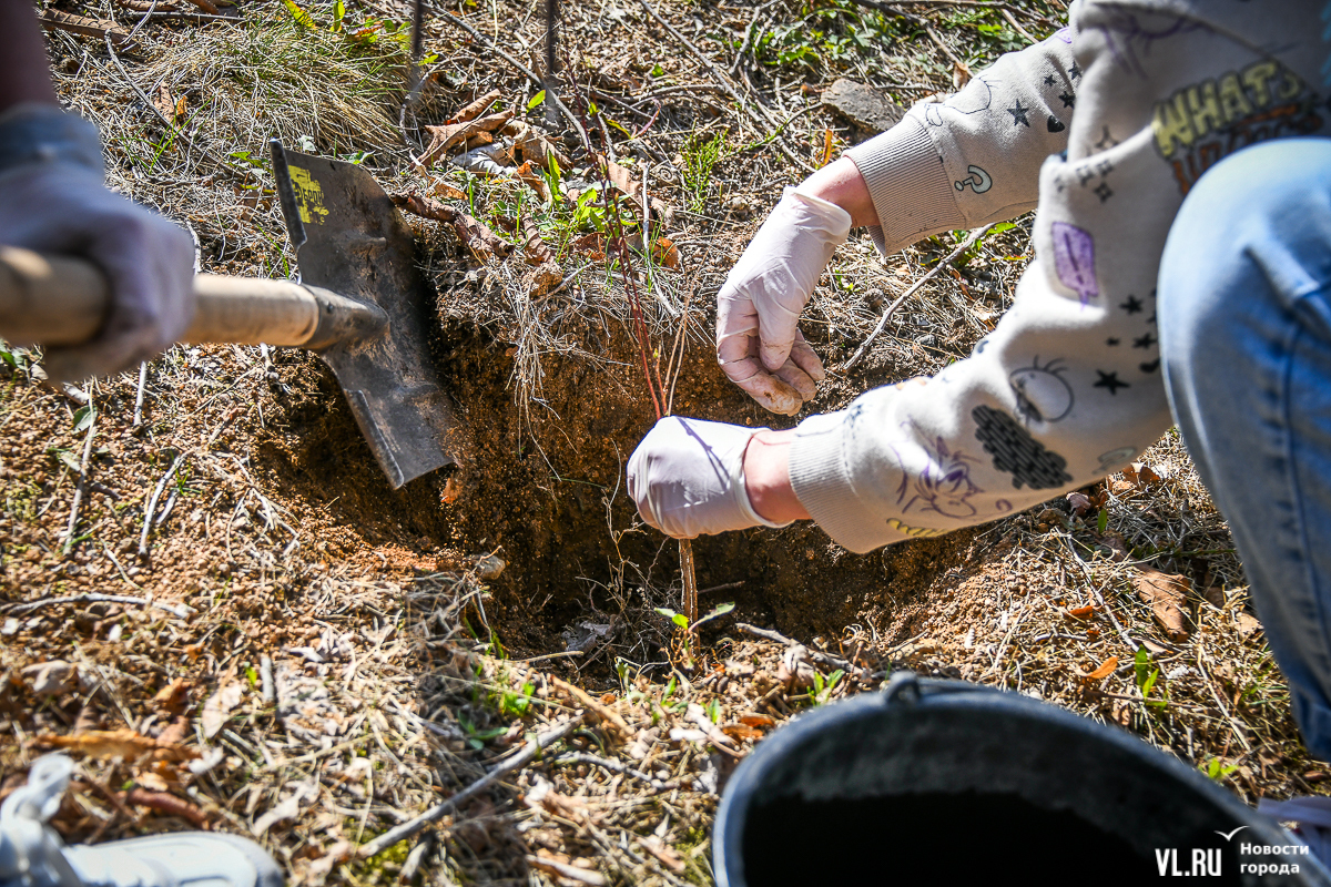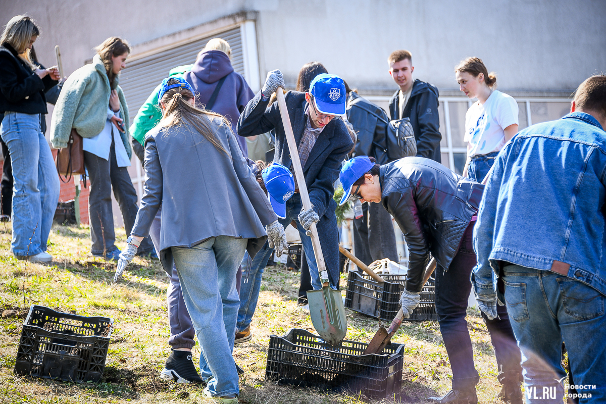 В кампусе ДВФУ во Владивостоке более 150 человек присоединились к международной акции «Сад памяти». В память о бойцах, погибших в годы Великой Отечественной войны, сегодня здесь, по словам организаторов, высадили 10 тысяч кедров и 1 тысячу абрикосов. Саженцы предоставил региональный минлесхоз, их вырастили в Ширяевском лесопитомнике (Михайловский район), а высадили на склоне у одного из гостиничных комплексов и на обширной зелёной территории, уходящей в сторону моря.