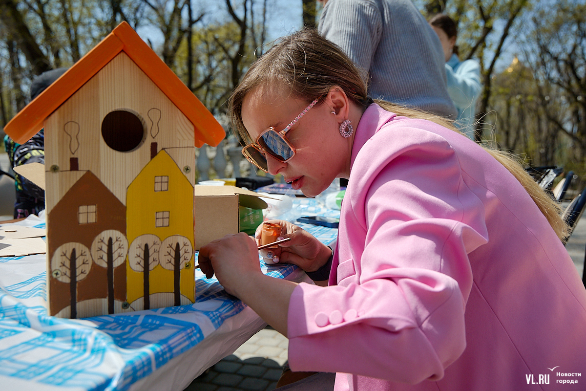 «Скворечник – жильё для семьи. А 2024 год объявлен Годом семьи. Скворечник – универсальное занятие: папы собирают, дети раскрашивают сооружение, а мамы пусть просто отдыхают. Места на мастер-класс разобрали быстро, буквально за пару дней. Раз такой ажиотаж, то мы его или повторим, или будем проводить подобные активности», – отметила Наталья Руденко, руководитель Дирекции общественных пространств Владивостока, она сама расписывала большой и просторный «ВИП-скворечник».