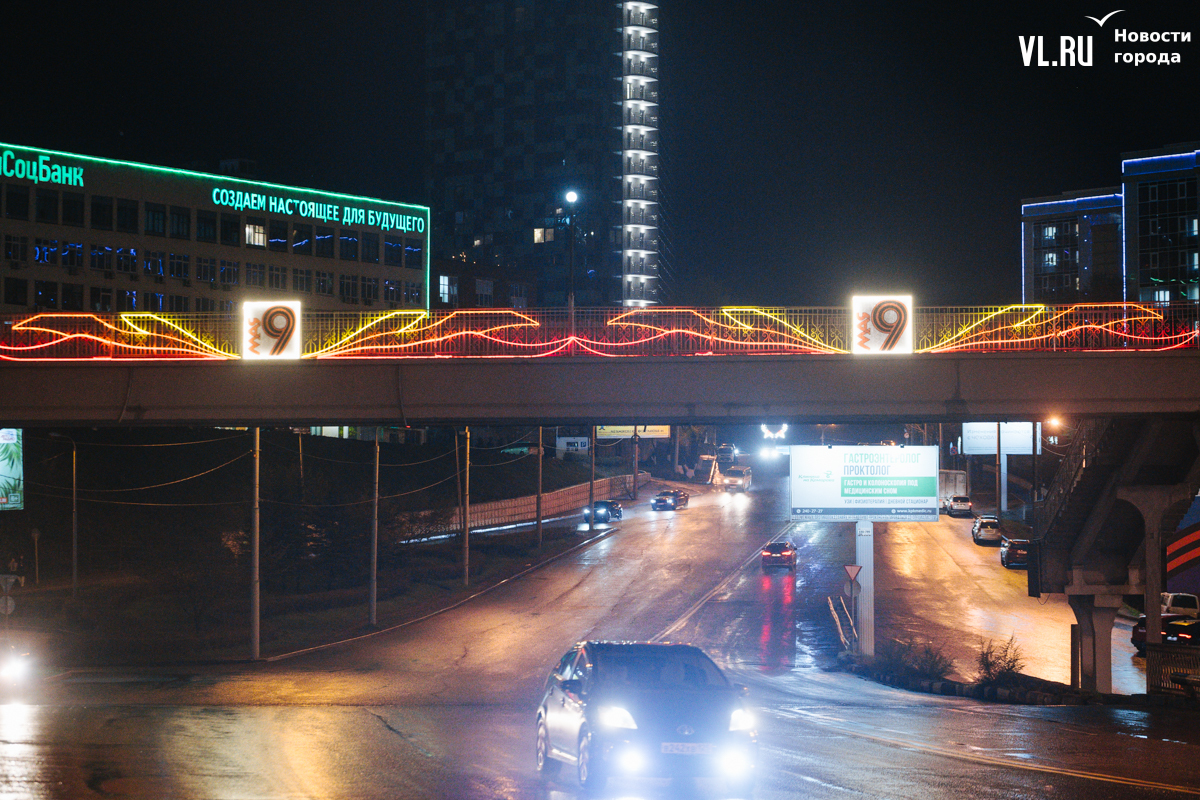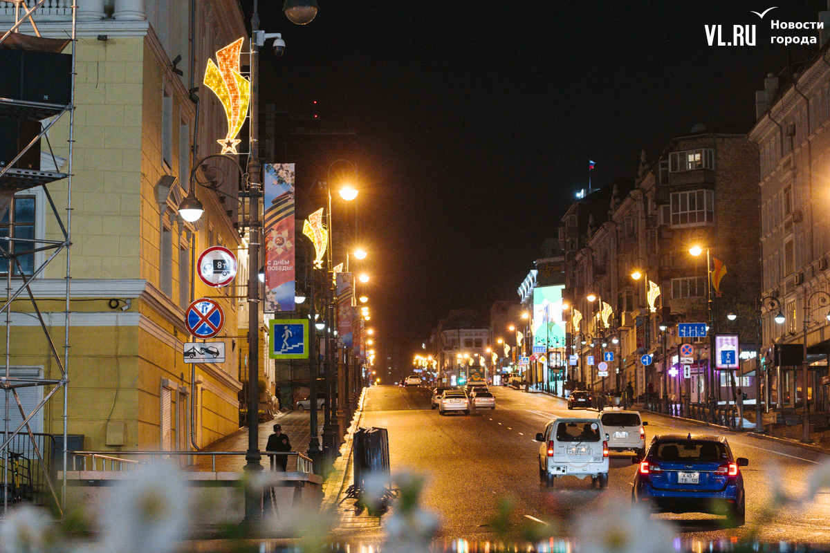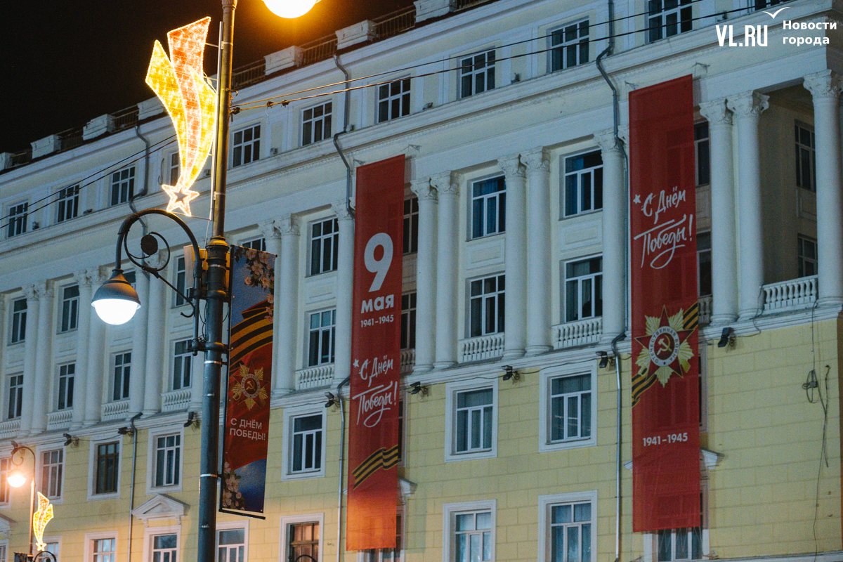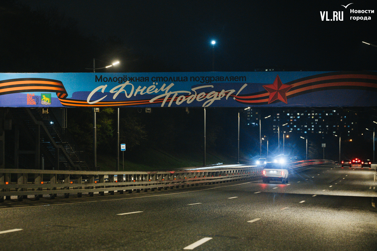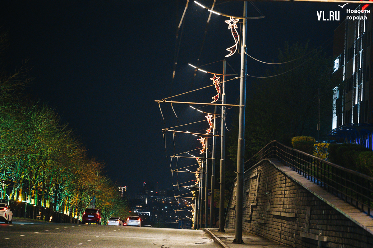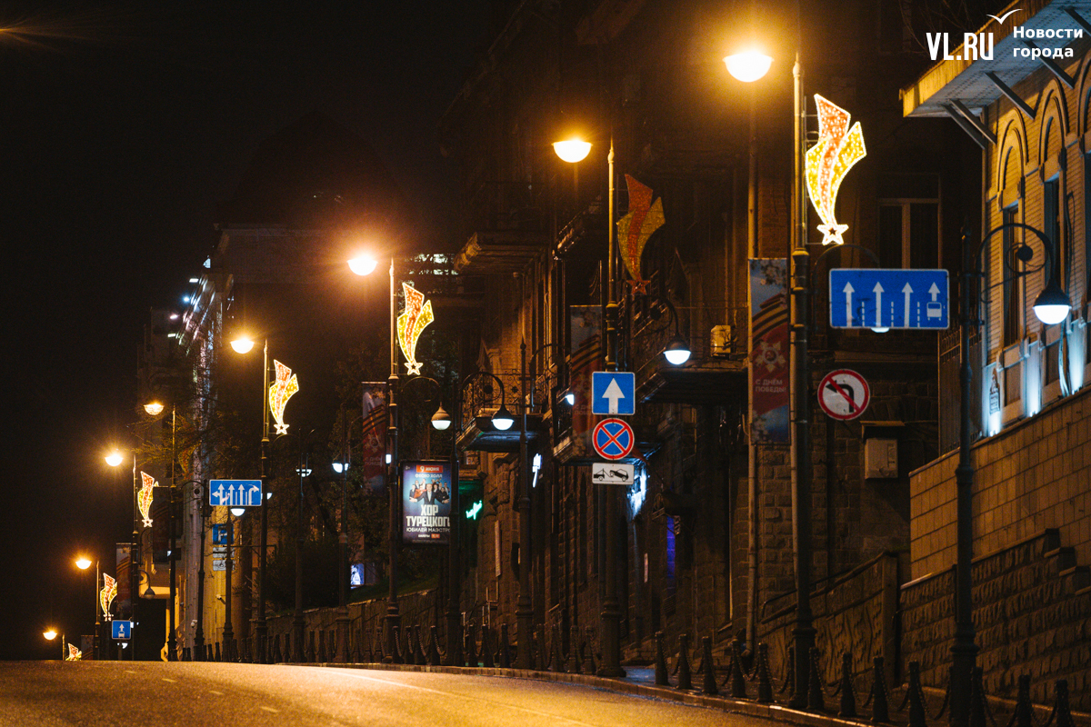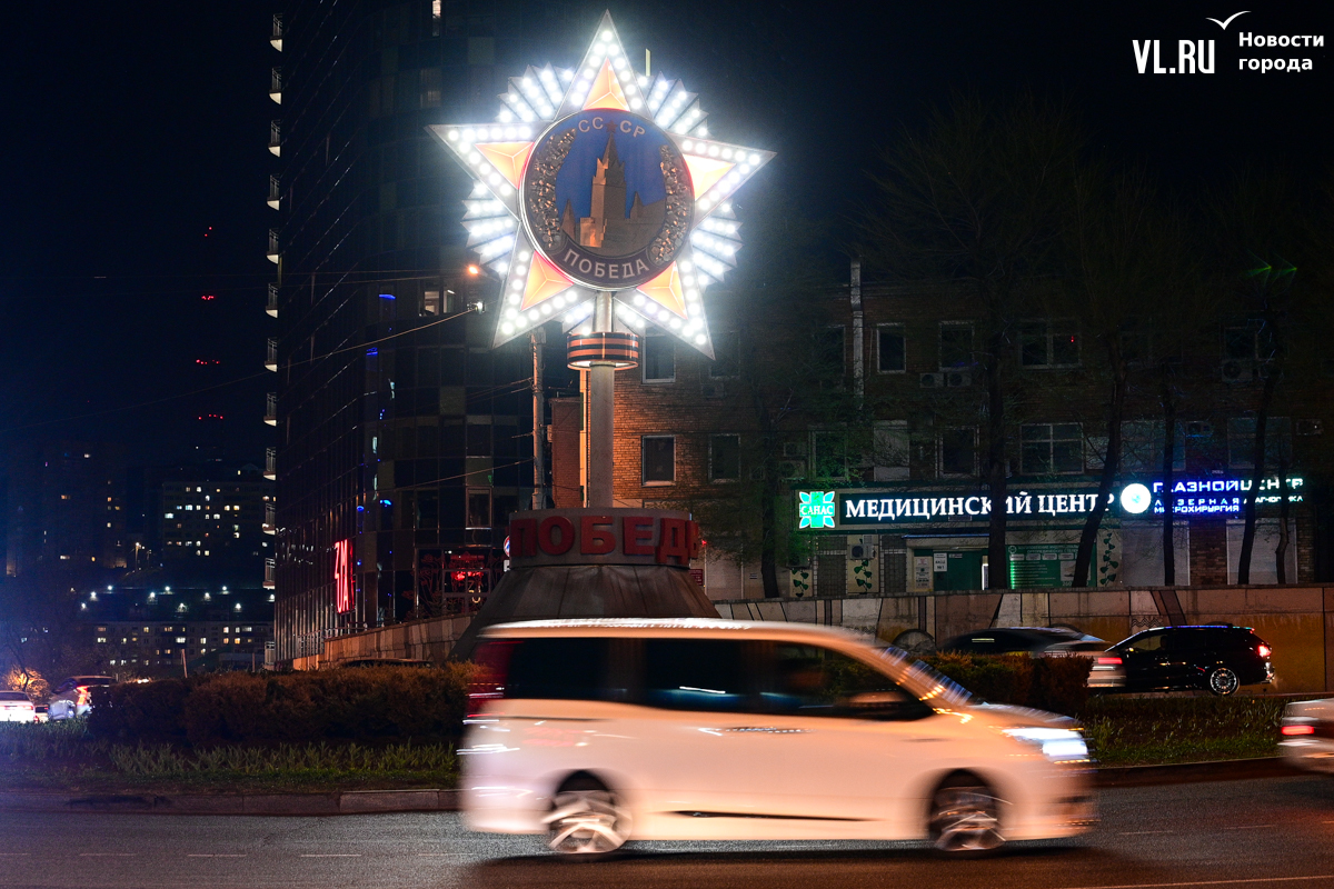 Готовность Владивостока ко Дню Победы теперь видна даже ночью: улицы города украсили праздничной иллюминацией. По заказу ВПЭС специалисты установили тематические конструкции на виадуках. А на опорах освещения появились падающие звёзды. Некоторые горожане считают, что к 9 Мая город выглядит ярче, чем к Новому году.