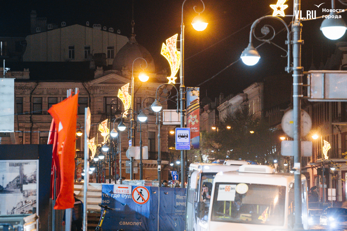 Работы по монтажу иллюминации ещё идут, их планируют завершить к 8 мая. А уже в четверг, 9 мая, во Владивостоке пройдёт парад Победы и праздничные мероприятия, которые завершатся фейерверком.