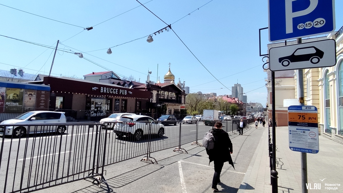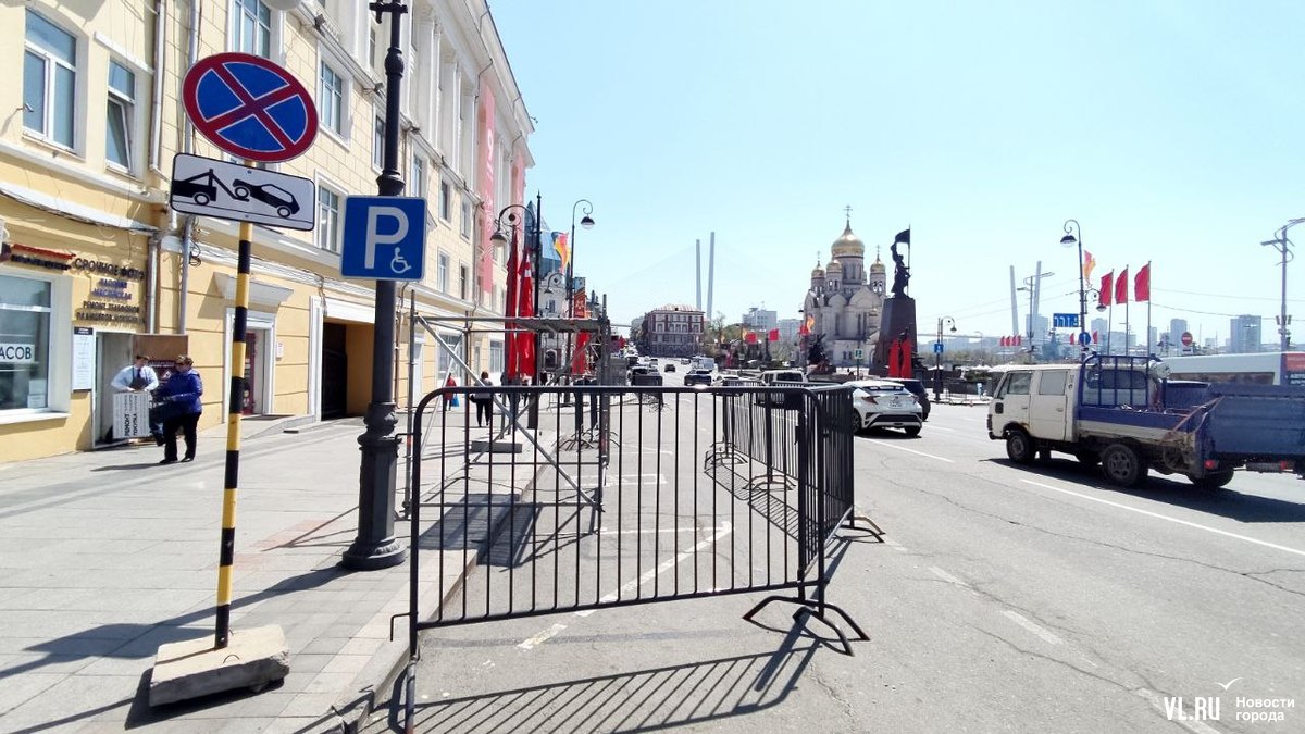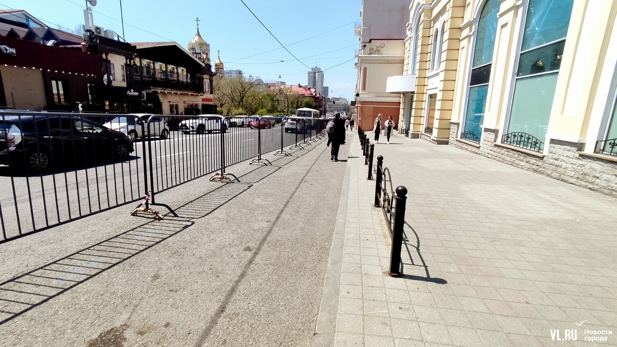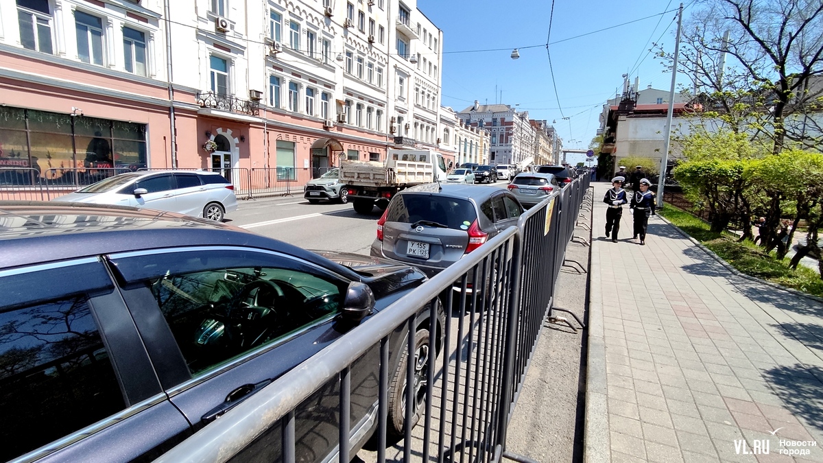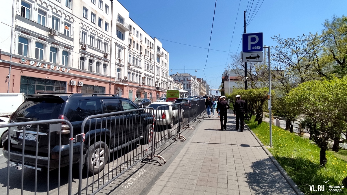После генеральной репетиции парада Победы, которая прошла в центре Владивостока 7 мая, на Светланской в нескольких местах остались ограждения, отделяющие тротуар от дороги. В районе пешеходных переходов забор отодвинули, а вот пользователям платной парковки таким образом путь от машины к тротуару усложнили. Кроме того, за ограждением остался парковочный карман в районе Адмиральского сквера, для автомобилей он недоступен. Как и парковка вдоль Корабельной Набережной, где сегодня и вовсе без анонса перекрыли дорогу на время возложения цветов к Вечному огню.