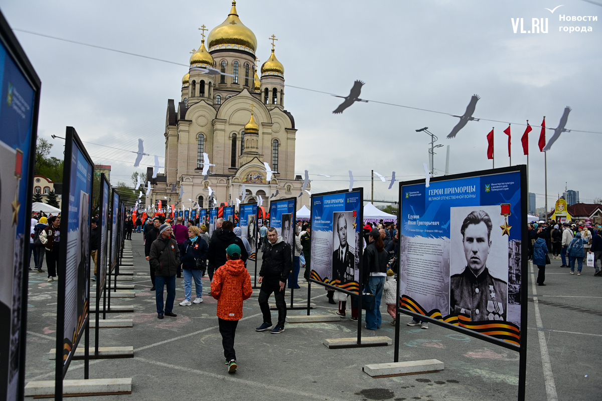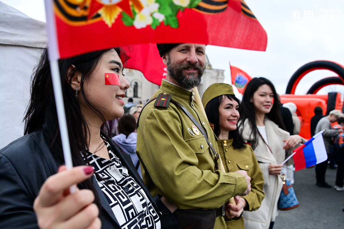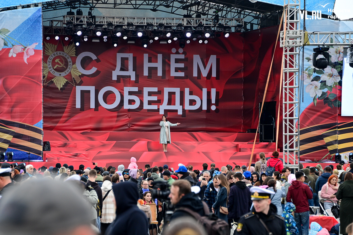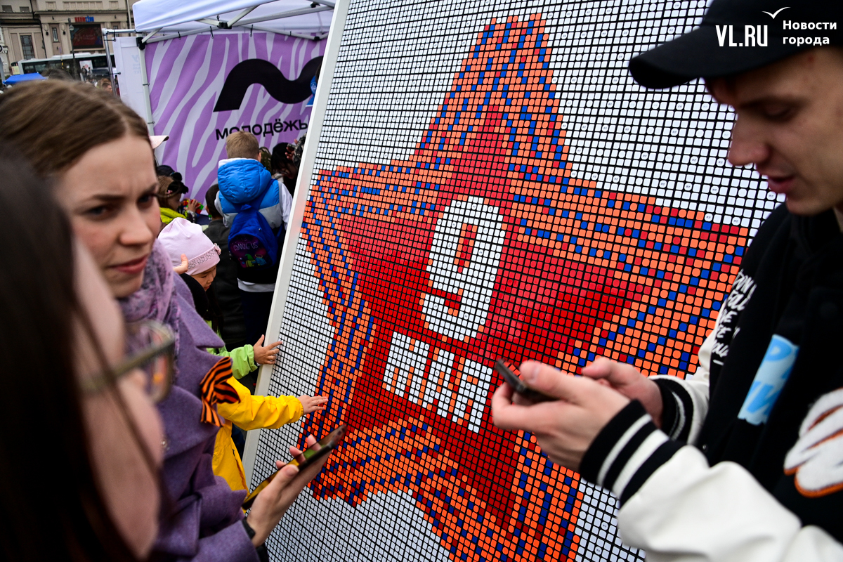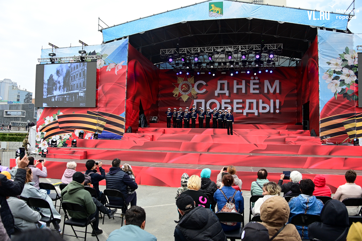 После парада празднование Дня Победы продолжилось на центральной площади Владивостока. Со сцены сегодня звучат песни военных лет, с фотографий выставок на горожан смотрят герои-приморцы и деятели искусства, участвовавшие в Великой Отечественной войне. Дети примеряли на себя роль пожарных или водружали «Знамя Победы» на крыше «Рейхстага», пройдя полосу препятствий. Взрослые читали фронтовые письма и медицинские книги военных лет. Горожане всех возрастов устанавливают рекорд по отжиманиям и пробуют солдатскую кашу.