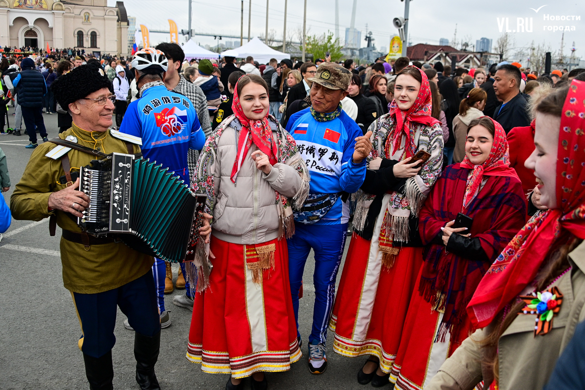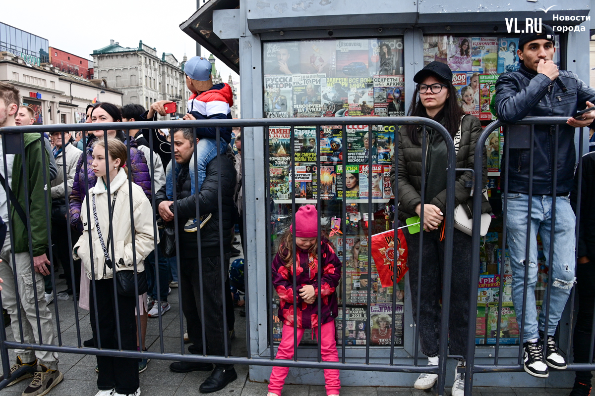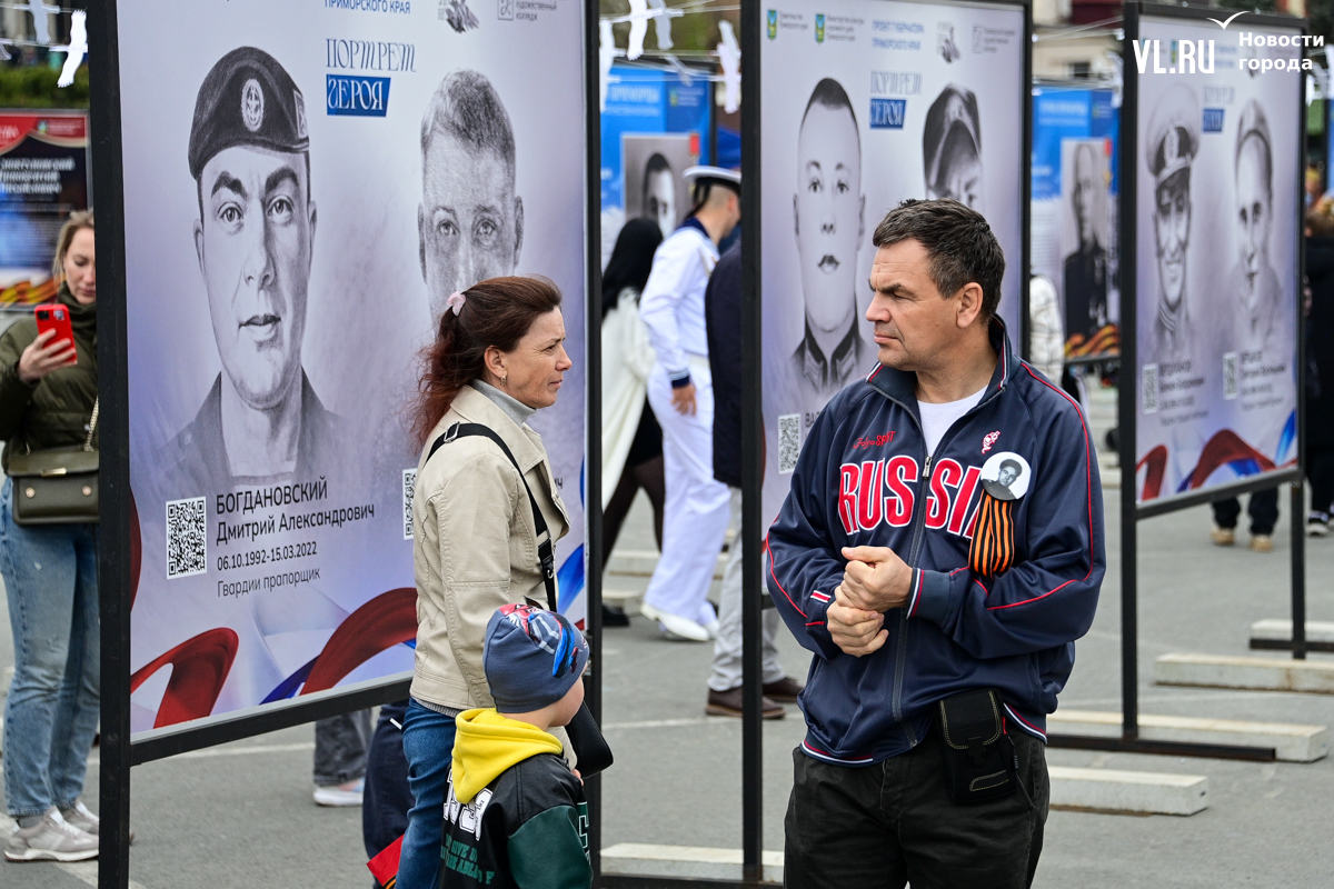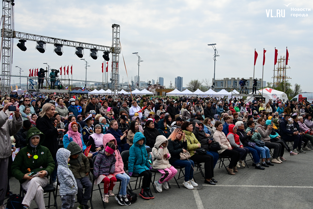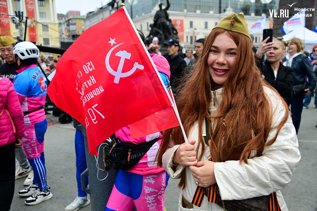 После парада празднование Дня Победы продолжилось на центральной площади Владивостока. Со сцены сегодня звучат песни военных лет, с фотографий выставок на горожан смотрят герои-приморцы и деятели искусства, участвовавшие в Великой Отечественной войне. Дети примеряли на себя роль пожарных или водружали «Знамя Победы» на крыше «Рейхстага», пройдя полосу препятствий. Взрослые читали фронтовые письма и медицинские книги военных лет. Горожане всех возрастов устанавливают рекорд по отжиманиям и пробуют солдатскую кашу.