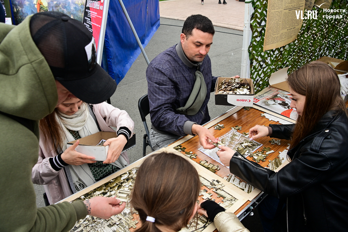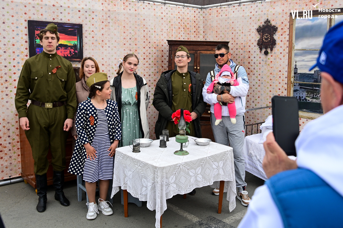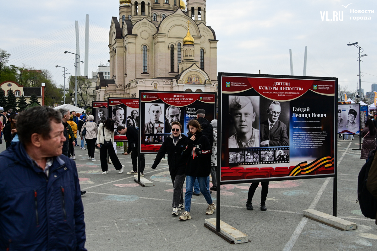 Замыкали круг активностей на центральной площади Владивостока исторические шатры: в них смотрели фотографии и фильмы военных лет, слушали музыку на пластинках, читали фронтовые письма и книги, выпущенные во время Великой Отечественной войны.