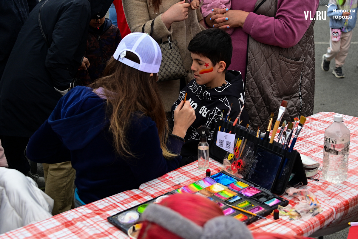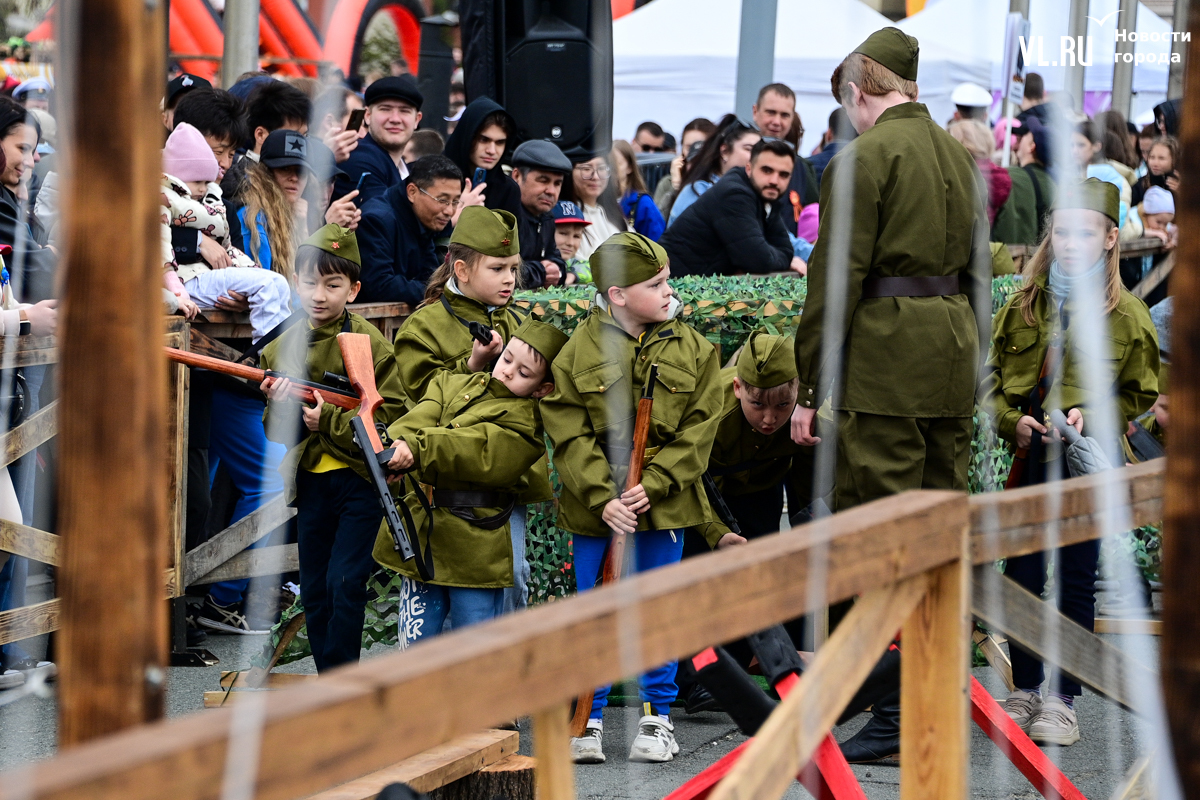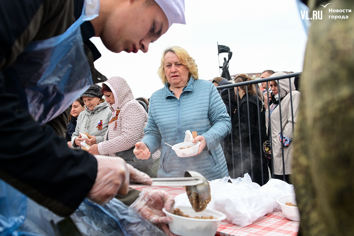 Многие, набравшись сил после еды, шли ставить «Рекорд Победы» по отжиманиям. По условиям акции, рекорд общий для каждого из более чем 150 городов-участников – количество всех отжиманий во Владивостоке суммируется, акцию проводят на разных площадках.