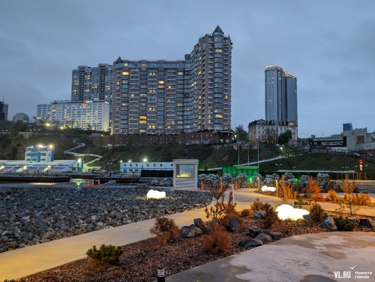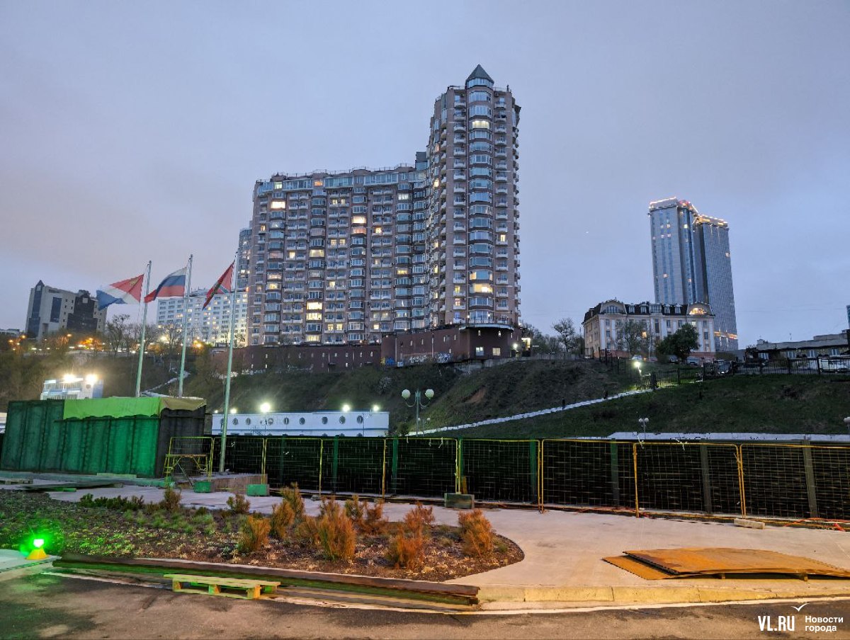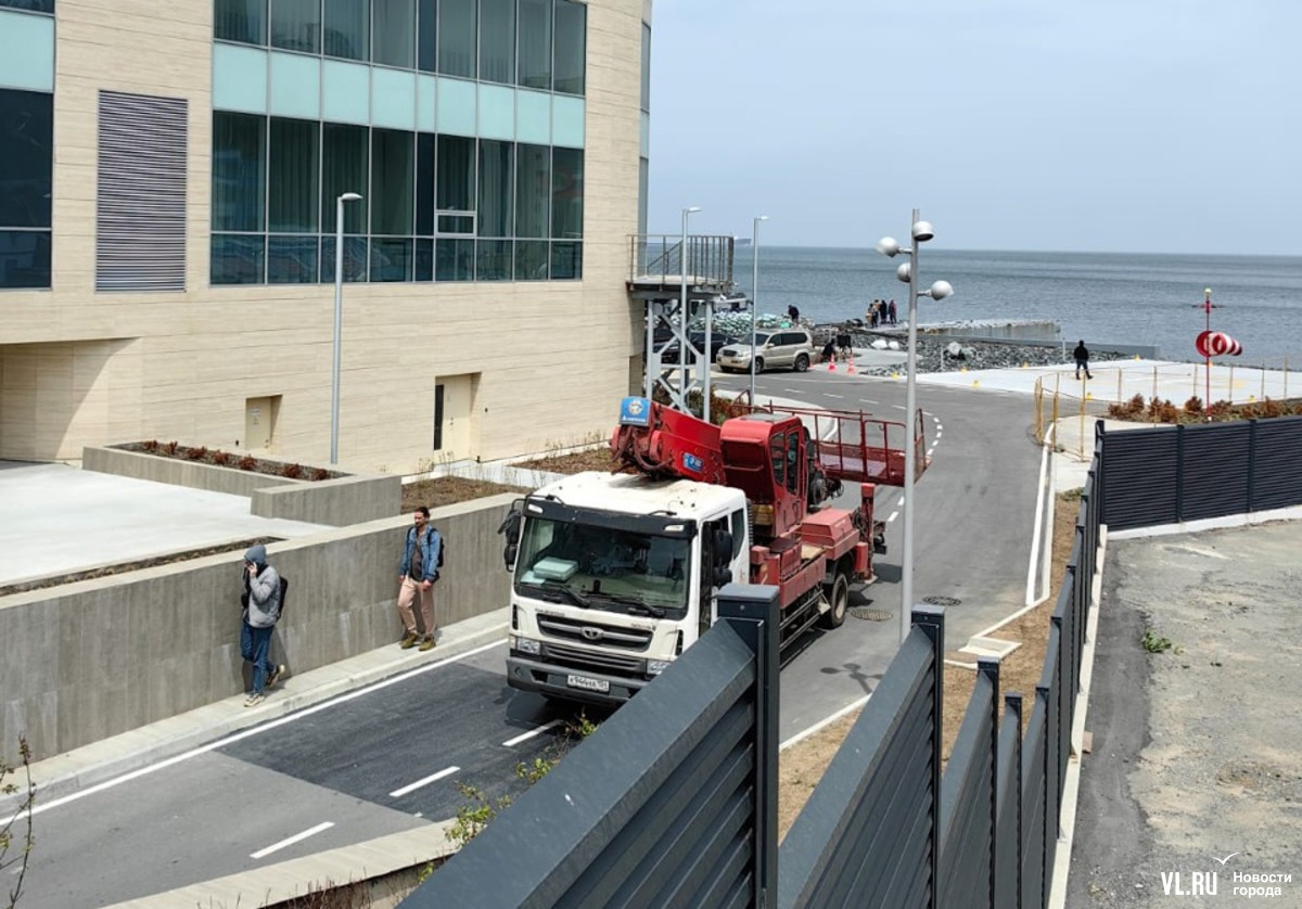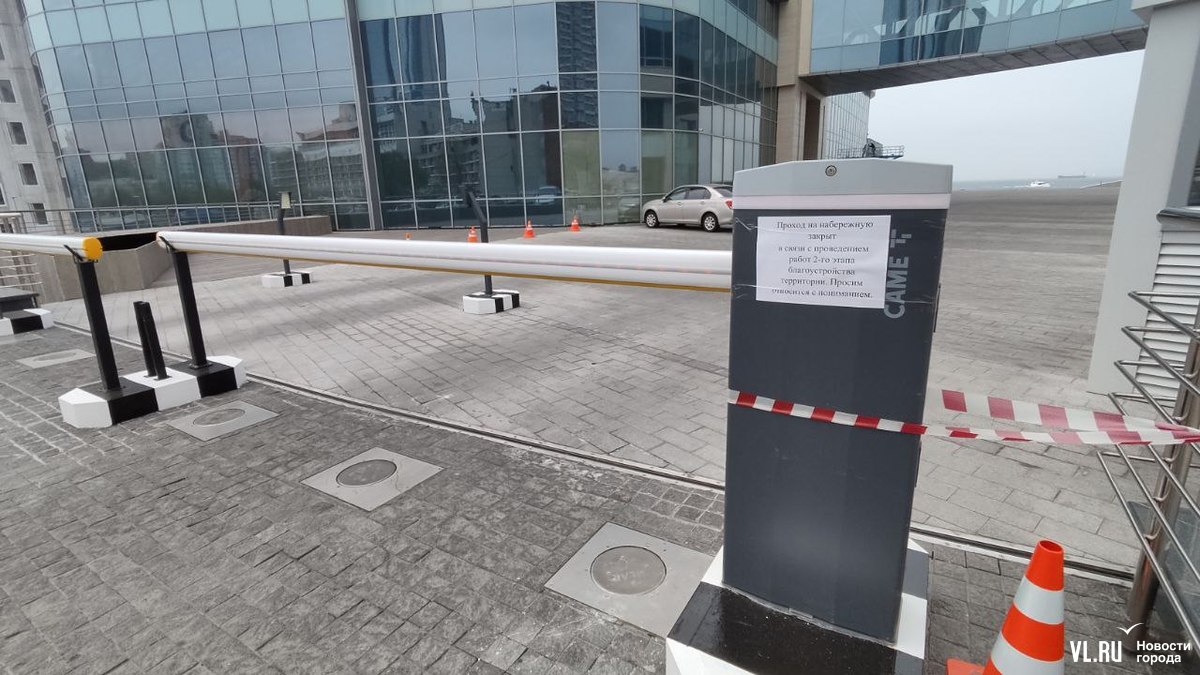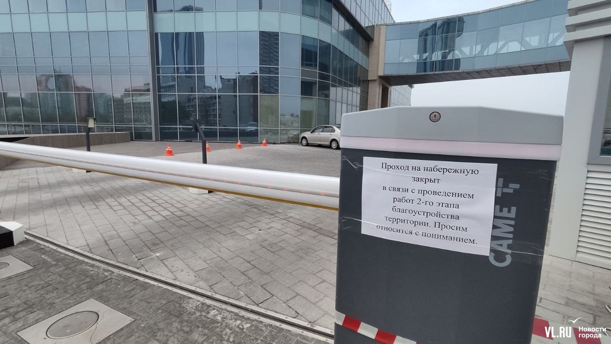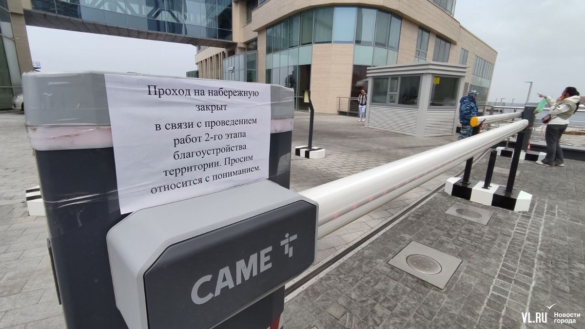 Недавно открытую набережную возле 5-звёздочного отеля на мысе Бурном во Владивостоке снова закрыли. С сегодняшнего дня людей пускают только в здание отеля и офисного центра, пройти к пирсам и амфитеатру нельзя. Там сейчас рабочие с отбойными молотками и строительная техника. Объявление на входе у шлагбаума гласит, что проход закрыт «в связи с проведением работ 2-го этапа благоустройства территории», без указания сроков. Сотрудники МФК «Бурный» сказали корреспонденту Новостей VL.ru, что набережная закрыта до лета.