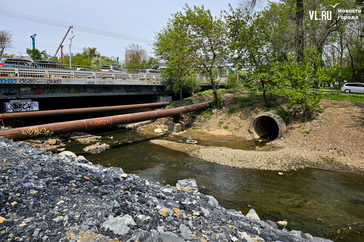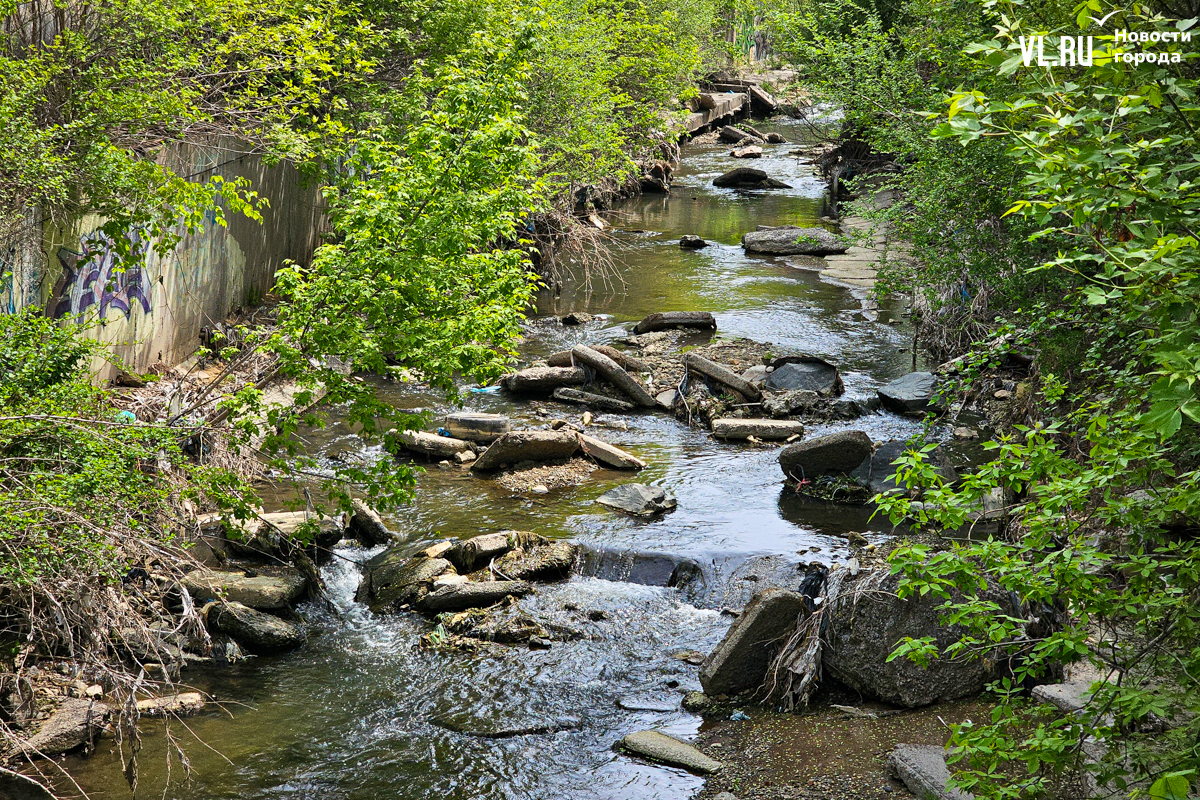 Собственно, с момента строительства района и началась история уже не освоения, а деградации реки. Она обмелела, рыбы здесь не стало совсем. С годами ситуация не улучшилась. Местные жители то там, то здесь проводили локальные субботники и пытались выловить хотя бы часть мусора из воды, но без комплексного подхода всё было тщетно. Реку немного почистили до саммита АТЭС, а затем в 2019 году внезапно провели расчистку русла. Но тоже на очень малом участке.