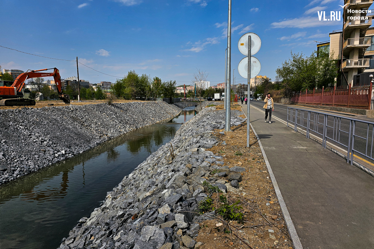 Удивительным образом место расчистки совпало с отремонтированной в прошлом году улицей Волжской и участком бывшего парка «Фантазия» и рынка «Самоцвет», где подмосковный застройщик, связанный с семьёй приморского губернатора, уже начал строительные работы. Компания обещала благоустроить русло Второй речки и построить набережную. Выглядит хорошо, хотя вода после работ ещё мутная от поднятого со дна грязного ила.