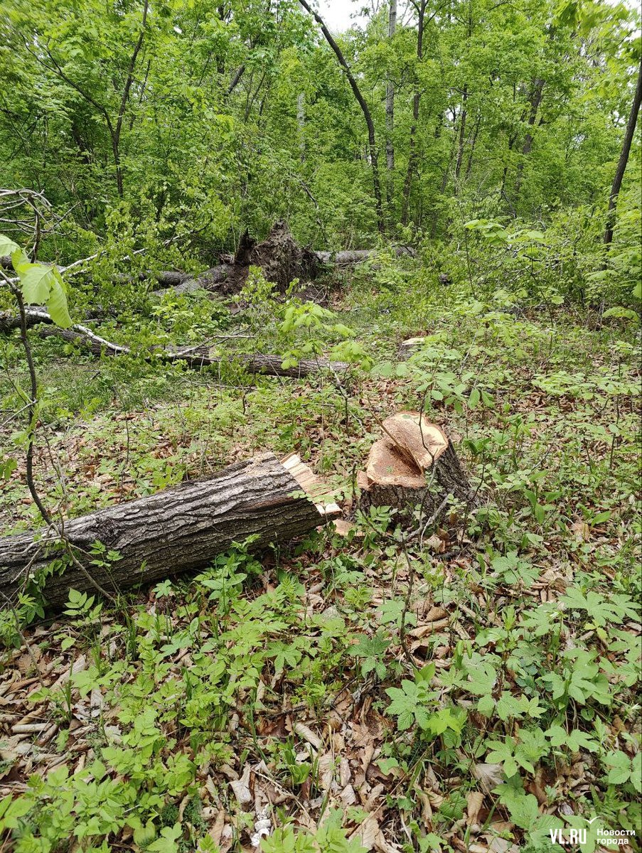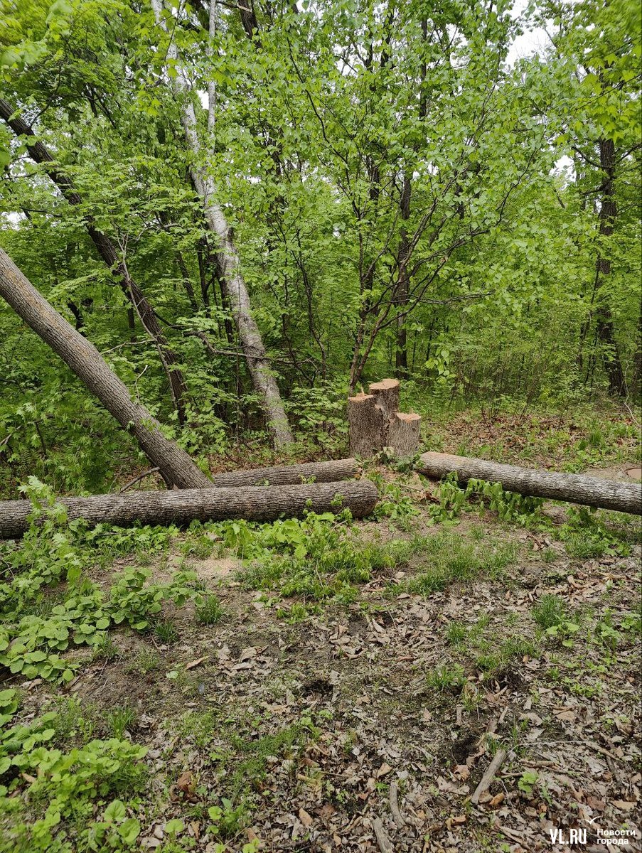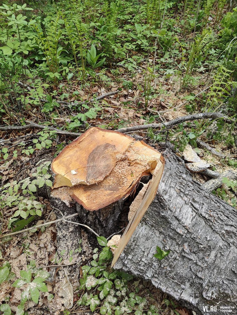 Кто организовал вырубку деревьев, на момент публикации неизвестно. Читатель, сообщивший о происшествии, предполагает, что таким образом «пробивали» дорогу к участку с кадастровым номером 25:28:050026:2381.