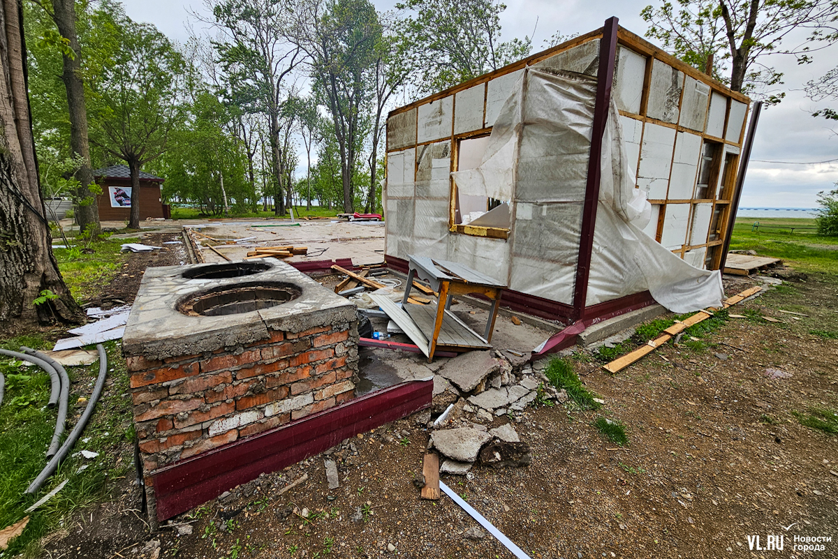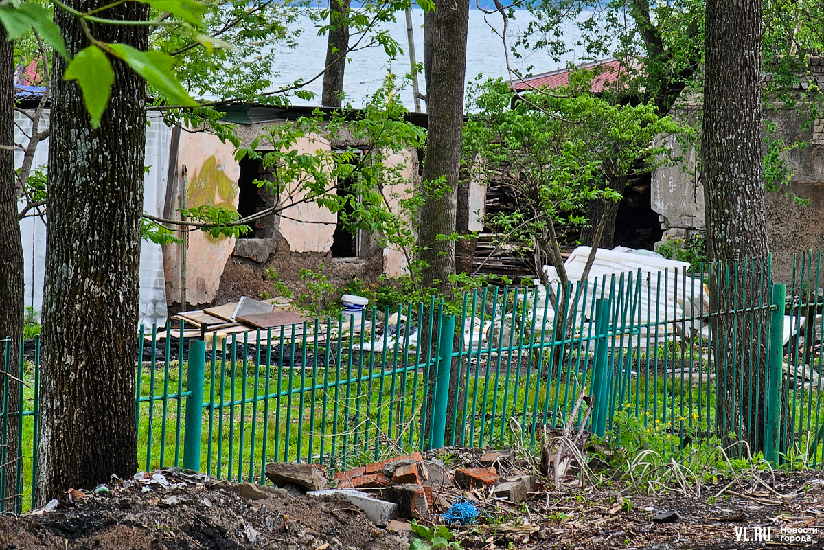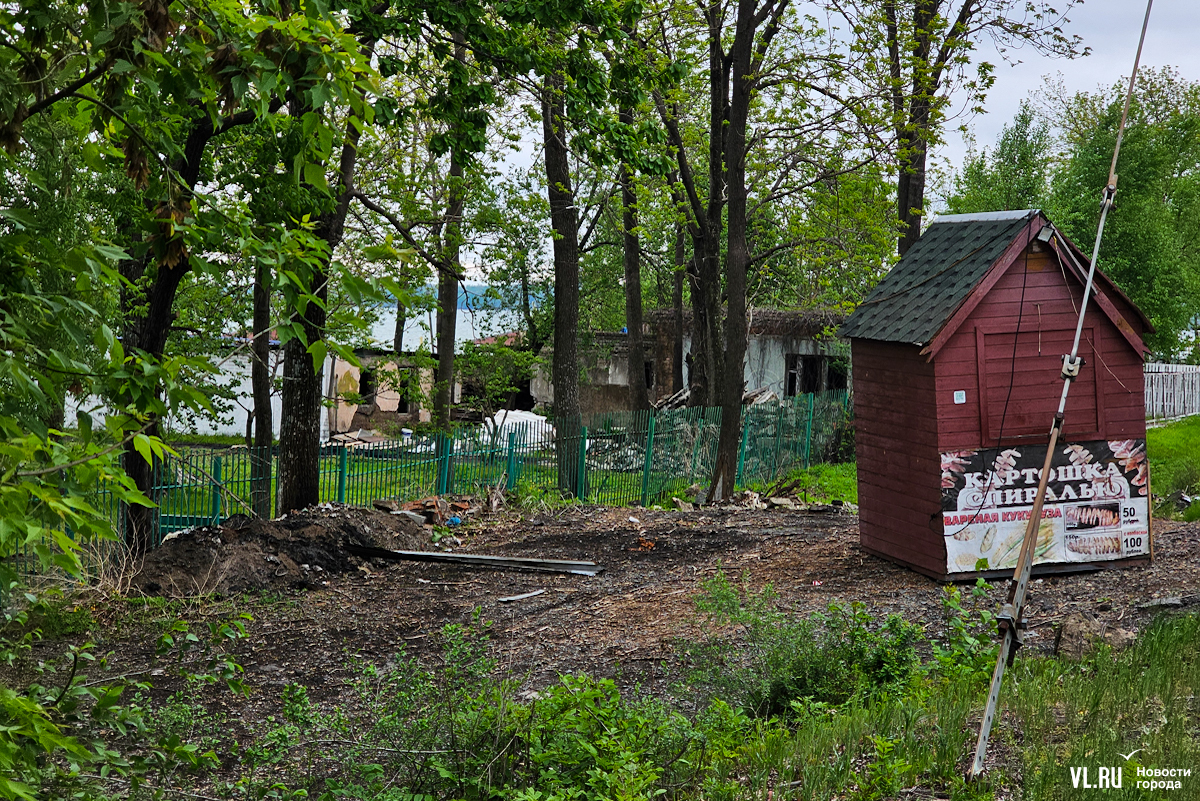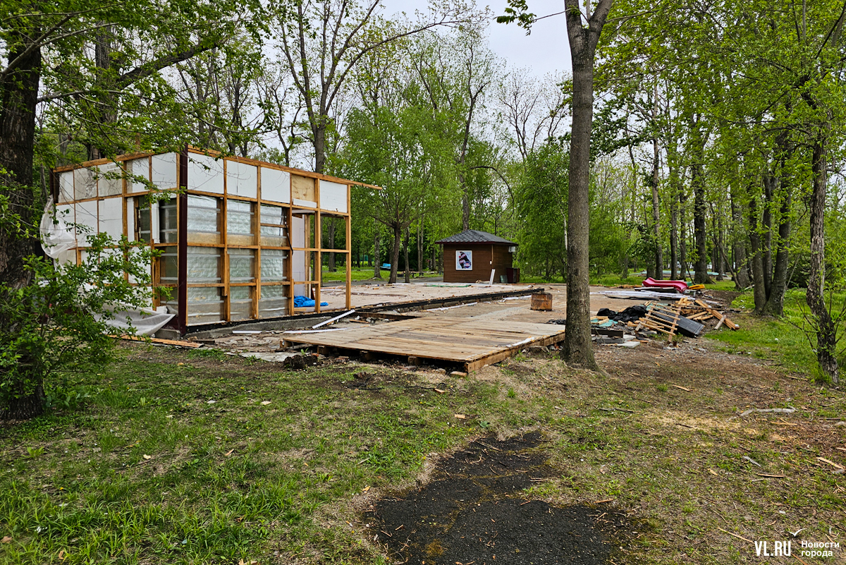 На выходных читатели Новостей VL.ru обратили внимание на то, как непривлекательно выглядит часть парка имени Лазо: на месте бывших кафе остался голый фундамент, одна из деревянных построек полуразобрана, а рядом образовались кучи строительного мусора.