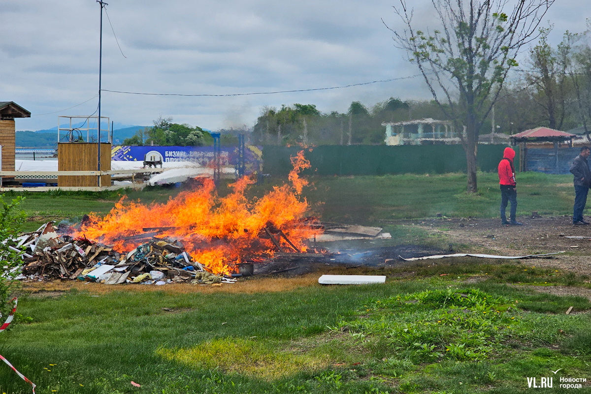 Зато известно, почему снесли постройки – у них «устарел внешний облик». Установку новых разыграют на торгах. А строительный мусор планируют вывезти с территории до конца этой недели. Хотя вывозить его придётся не в полном объёме. Корреспондент Новостей VL.ru, который отправился в парк Лазо, заметил, что неизвестные люди (вероятно, рабочие) решили заняться мусоросжиганием, не покидая общественной зоны.