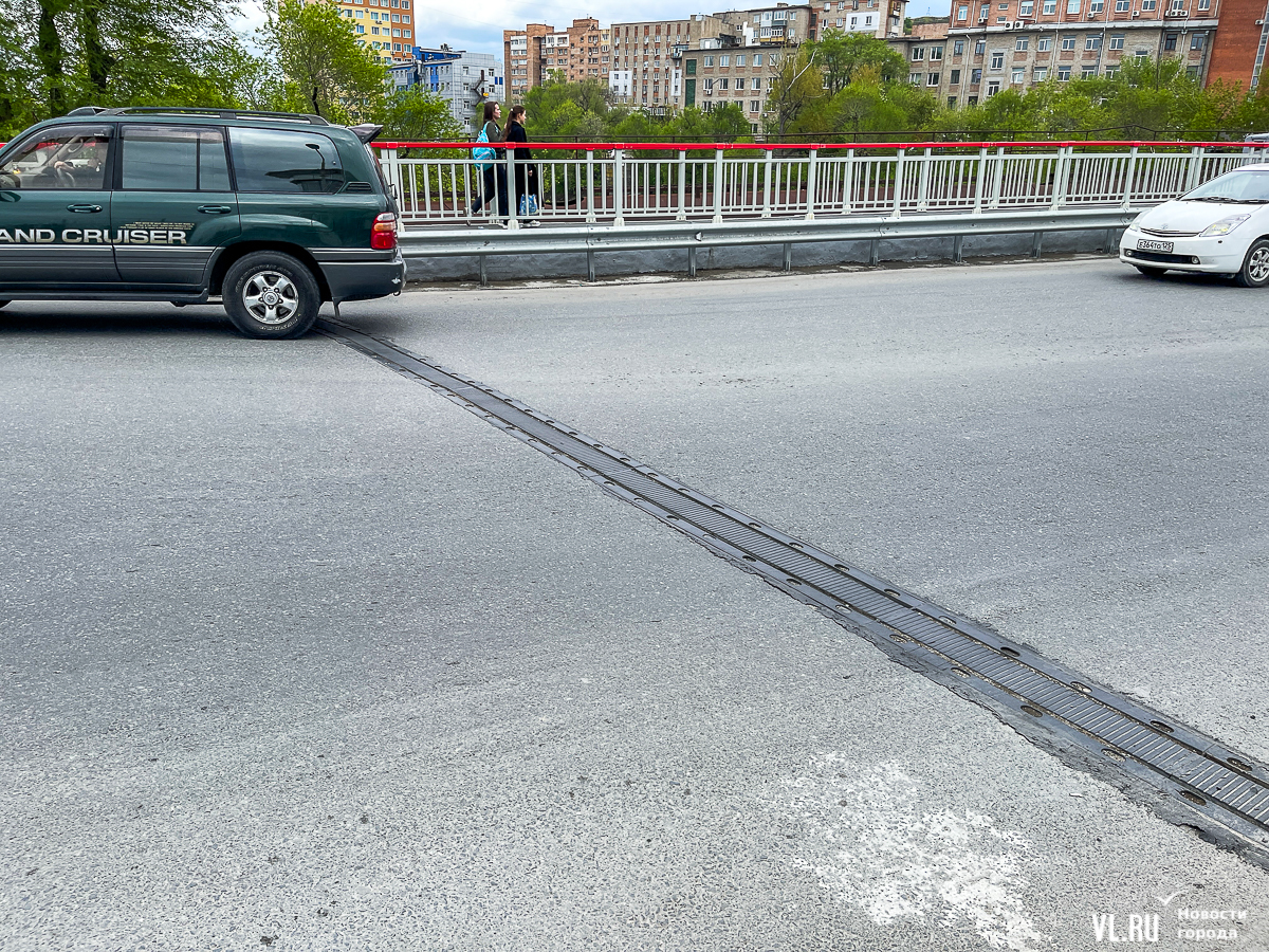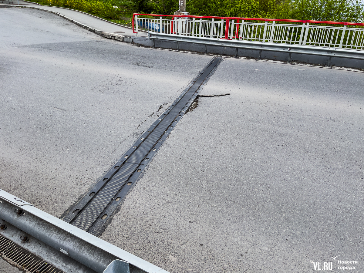 Спустя полгода после завершения ремонта жители Владивостока заметили, что асфальт вокруг одного из деформационных швов пришёл в негодность – по нему пошли трещины, где-то он и вовсе отлетел. Кусок какого-то материала, находившегося между швом и асфальтом, частично открепился и теперь валяется на дороге. Остальные деформационные швы тоже не внушают доверия – создаётся впечатление, что подобное может произойти и с ними в ближайшее время.