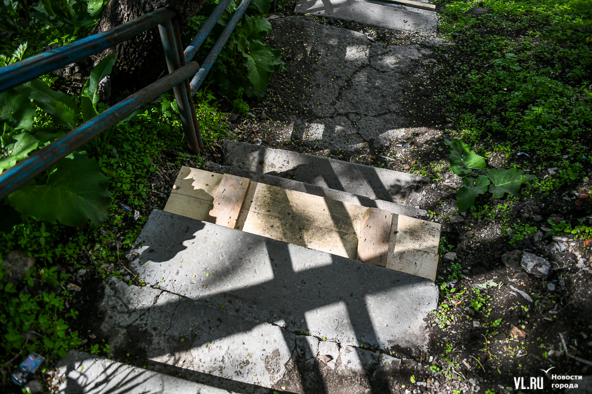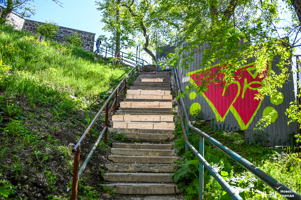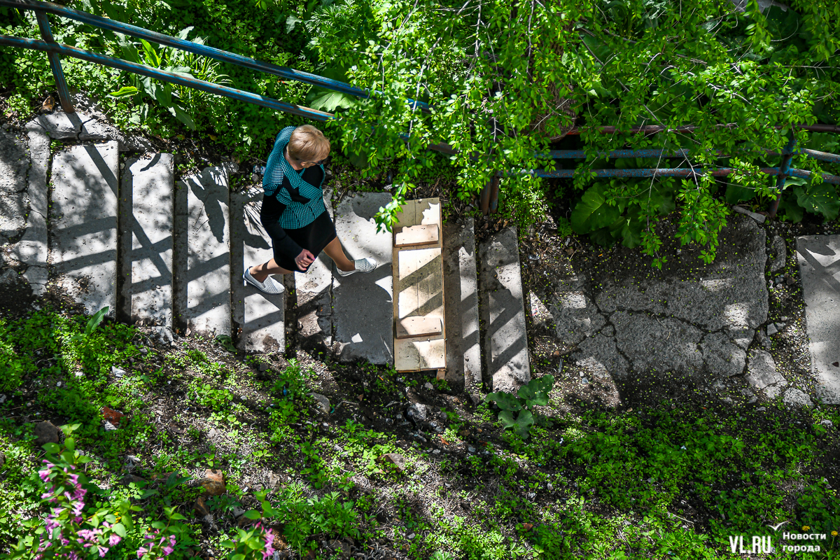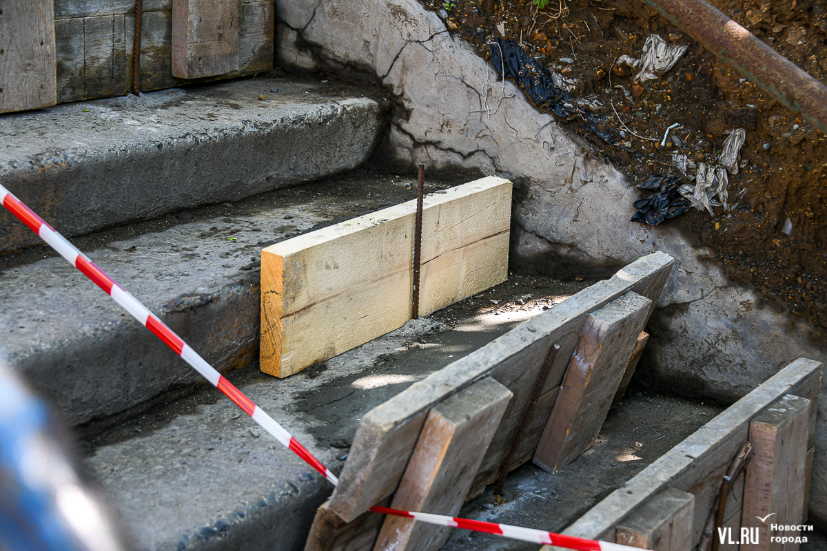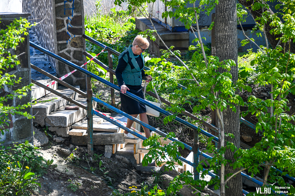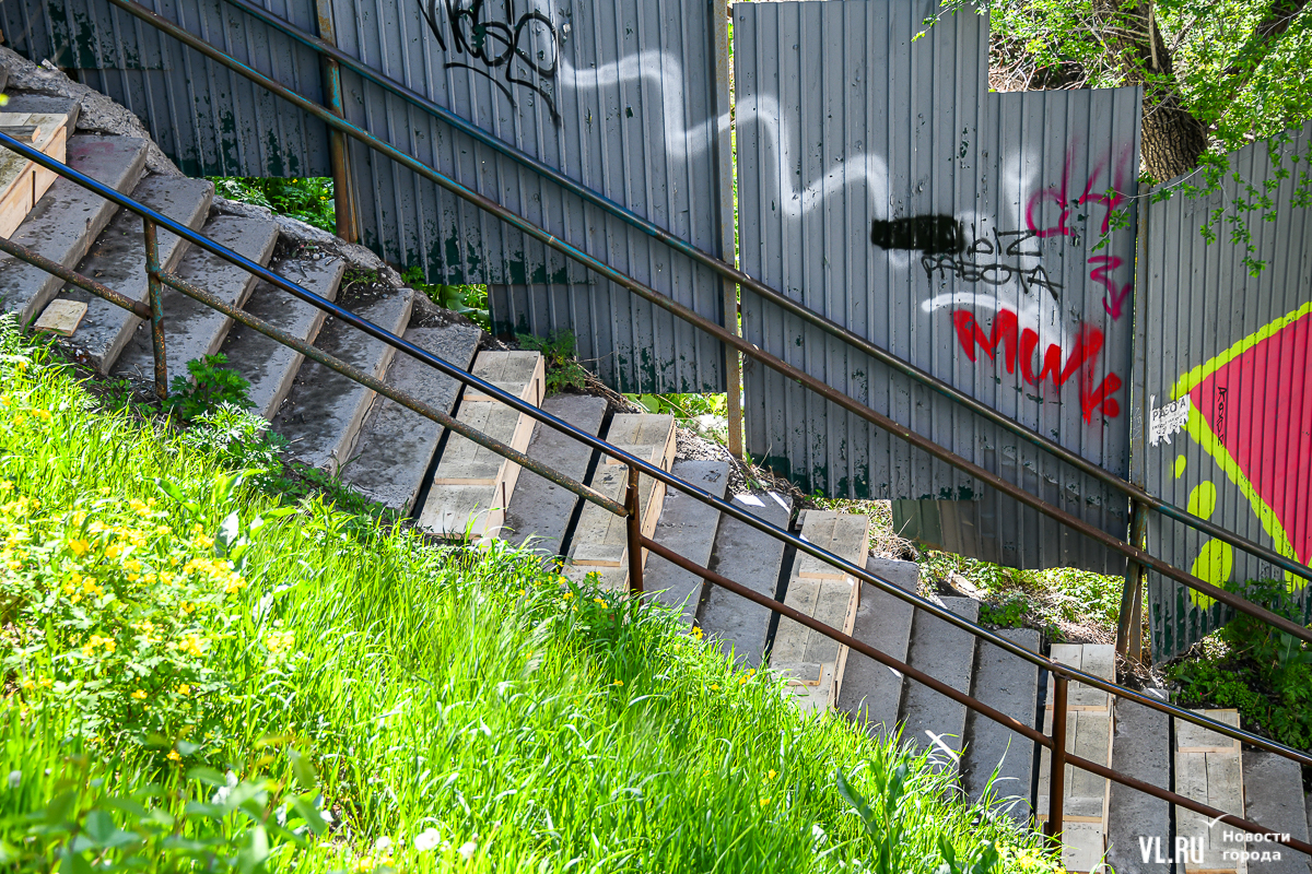 Подведомственное учреждение мэрии, МКУ «Зелёный Владивосток», начало локальный ремонт лестницы около верхней станции фуникулёра. Работы планируют закончить до конца мая, потому что уже с 1 июня фуникулёр на месяц закроется на ремонт и проход по лестнице окажется единственной альтернативой.