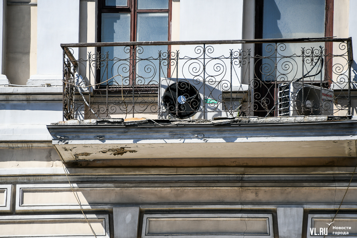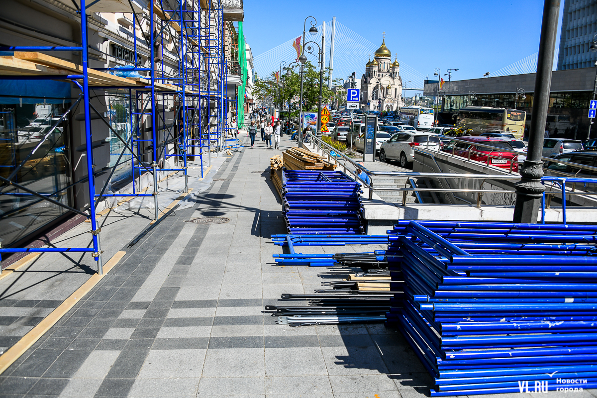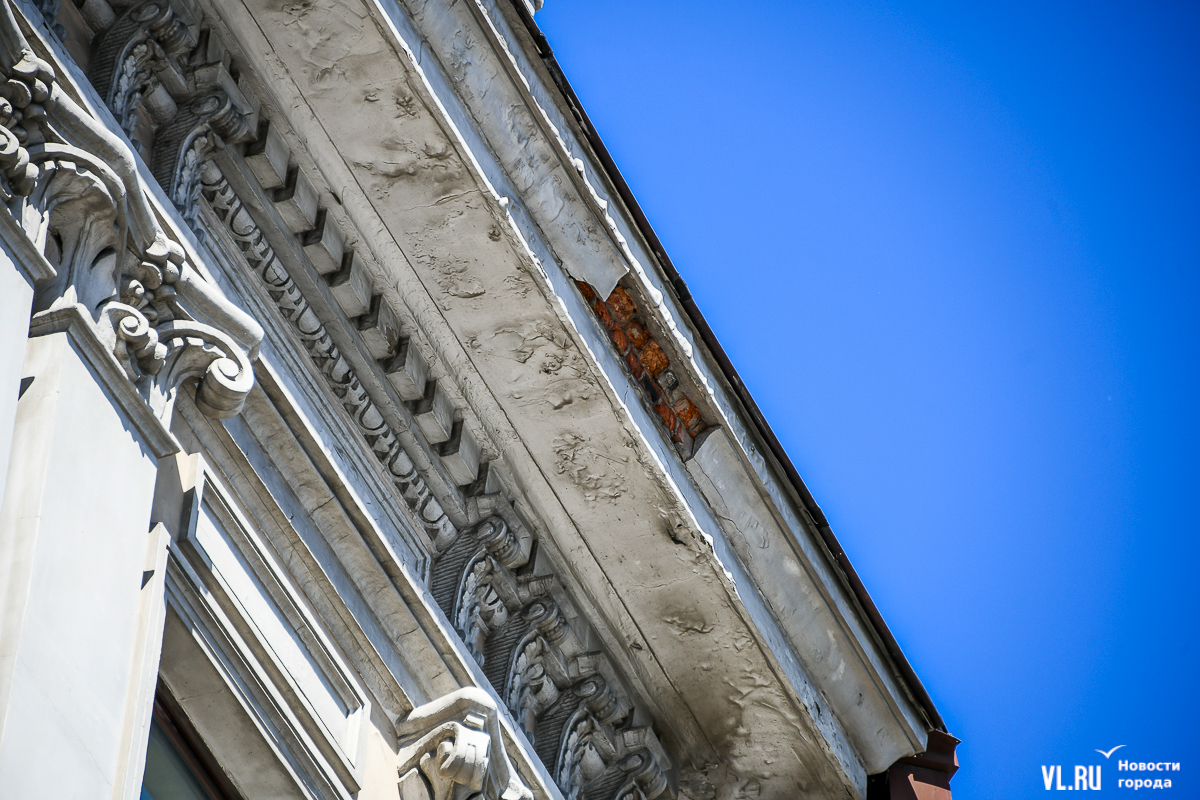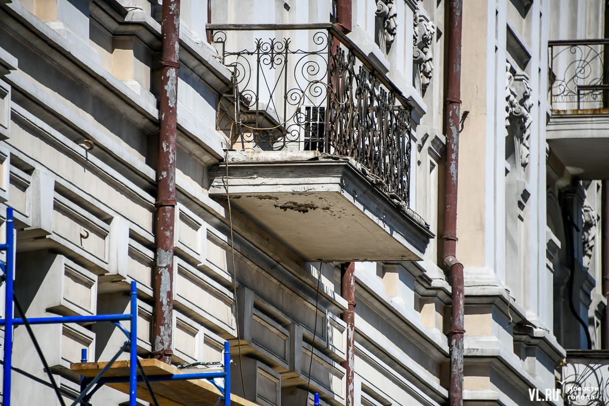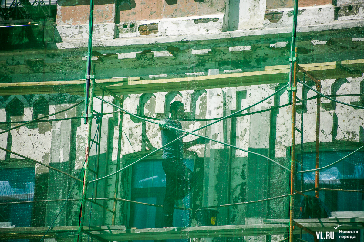 В центре Владивостока продолжается капитальный ремонт фасадов двух исторических зданий – ТЦ «Золотой Рог» (Алеутская, 20/Светланская, 13) и краевой филармонии (Светланская, 15). В первом случае работы проводит частный собственник, во втором заказчиком работ выступило краевое министерство культуры. Завершение их запланировано, соответственно, на конец июня и август.
