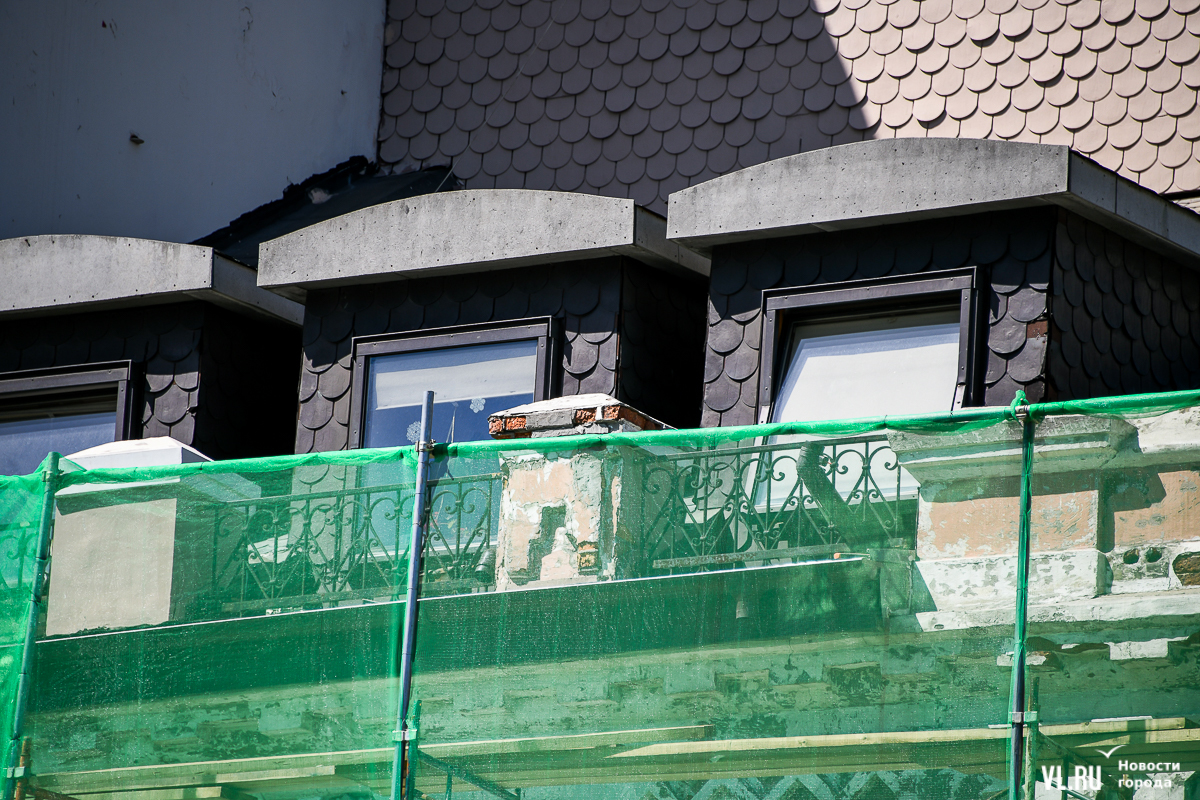 В компании «Дальстройбизнес-ll» отметили, что, помимо фасада, подрядчик в рамках договора сейчас изготавливает входную дверь из натурального дерева в кассовый зал по нормам для маломобильных граждан. Сейчас работы идут на пристройке (где расположены кассы), после их завершения строительные леса переместятся к главному входу в учреждение (это более высокая часть здания, которая раньше относилась к гостинице «Золотой Рог»).
