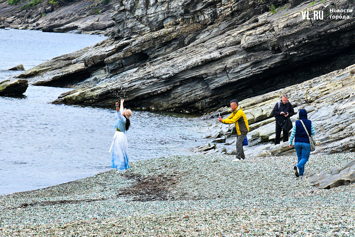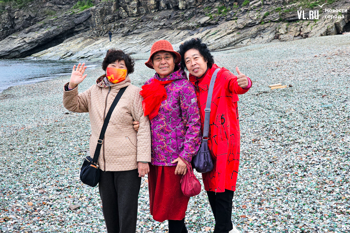 «Это целый стеклянный остров. Он такой красивый. Бывает, туристы увозят отсюда пакеты с камнями, но нам сказали, что лучше взять максимум 1 или 2 камушка. Такой пляж очень удобный для гостей. Здесь я себя хорошо чувствую, а воздух очень приятный», – рассказал корреспонденту Новостей VL.ru турист из КНР через переводчик в телефоне.