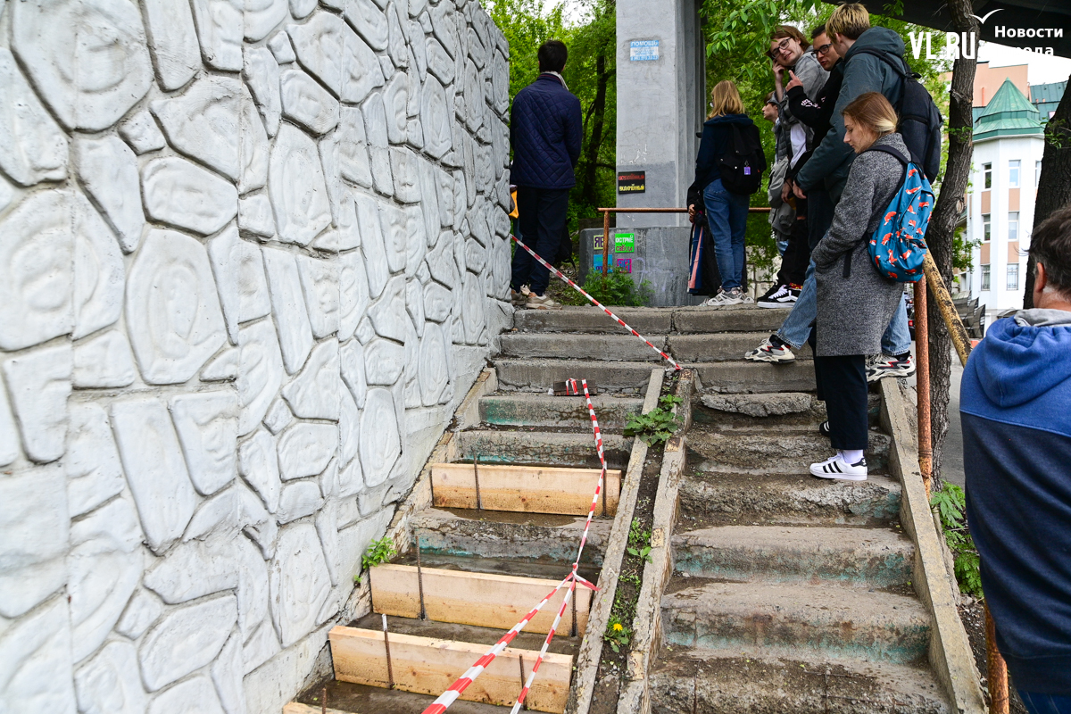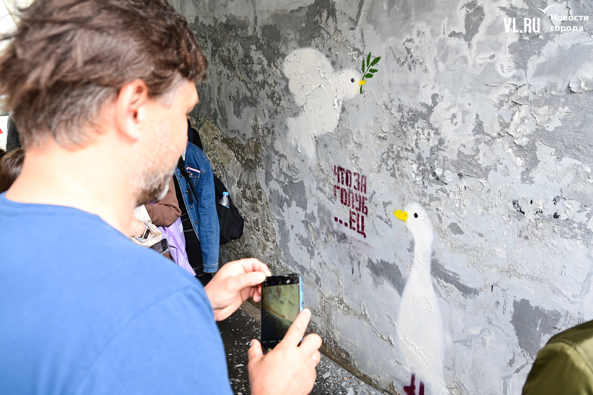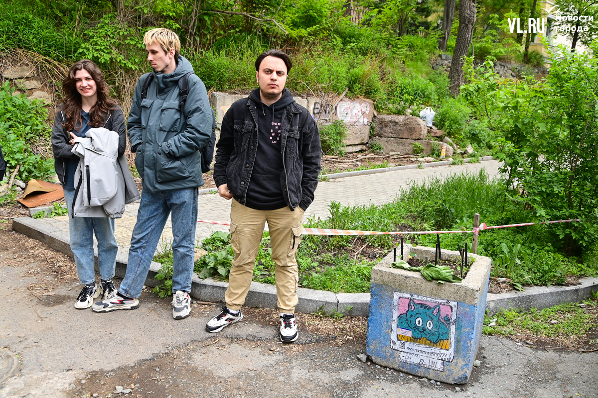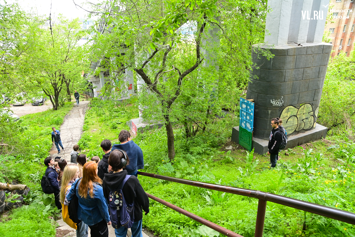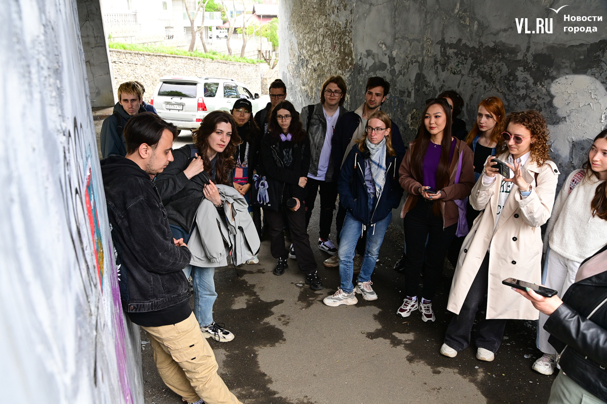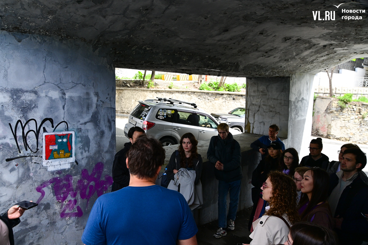 Студенты ДВФУ выбрали для художественного высказывания тихие уголки старого центра Владивостока, разместив на вертикальных и горизонтальных поверхностях более десятка объектов стрит-арта. Они некрупные, и многие с ходу можно не найти. Учащиеся магистрата по специальности «Цифровое искусство» и их преподаватель Павел Шугуров показали корреспондентам Новостей VL.ru, где стоит останавливаться прохожим.