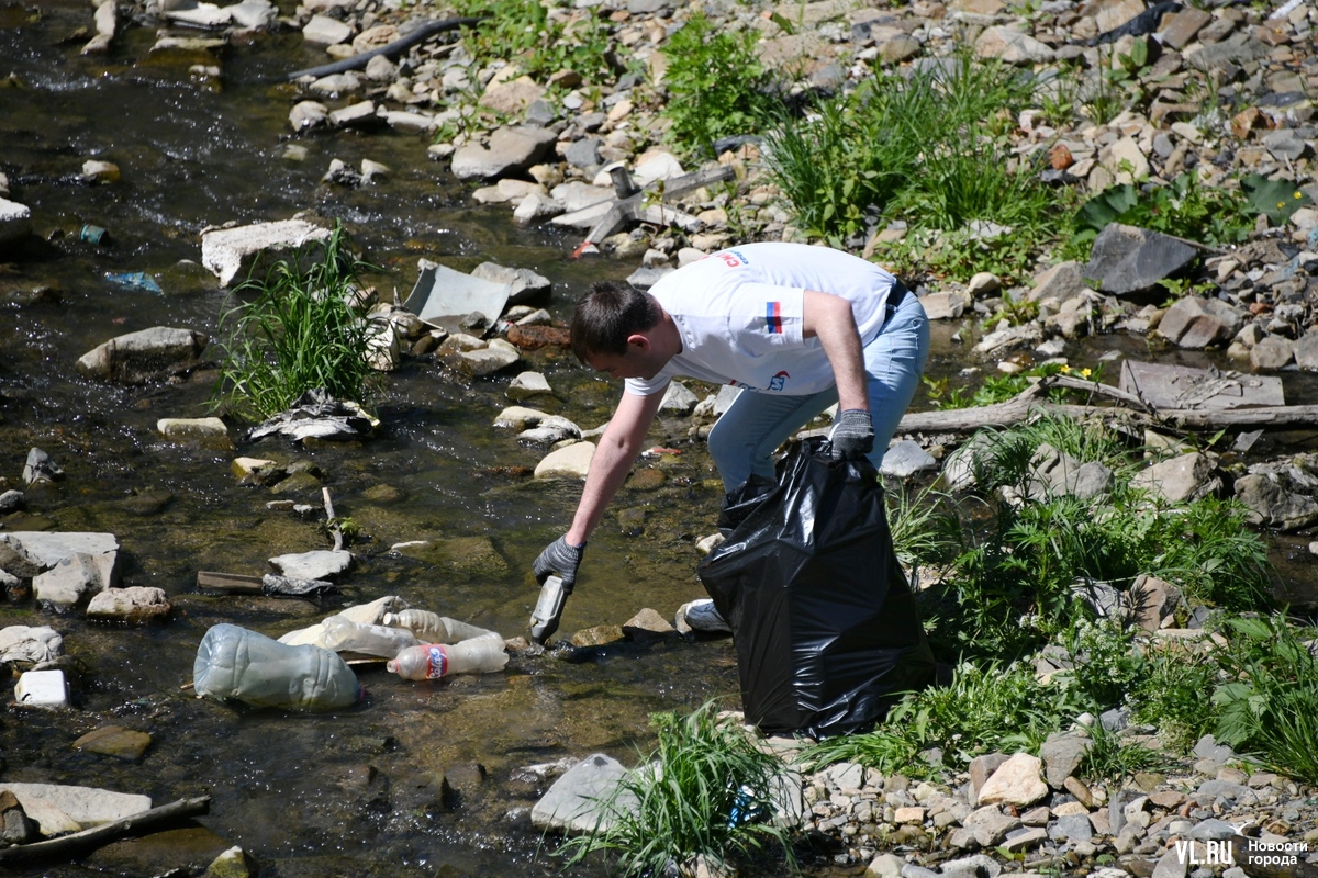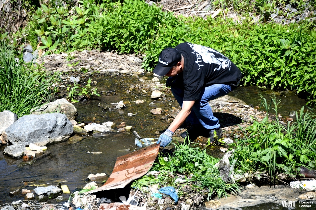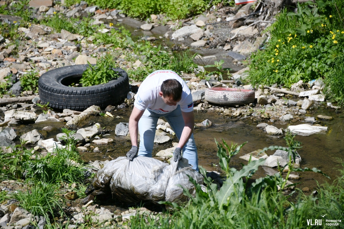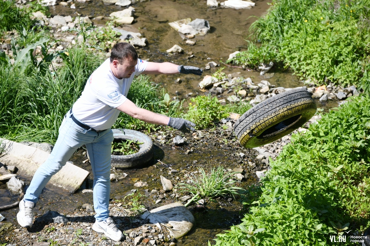 От природы живописный берег Первой речки в районе улицы Карьерной в последнее время выглядел грязным и запущенным. Мусор, ветки и покрышки, очень много покрышек: судя по остаткам краски на их боках, раньше они играли роль клумб на местных грядках, а затем волею судеб оказались на дне речном. Однако общественники Владивостока решили ситуацию исправить и привести территорию в порядок.