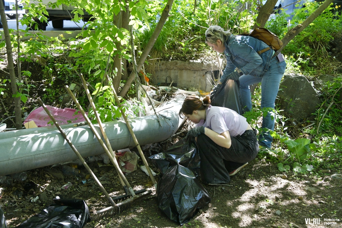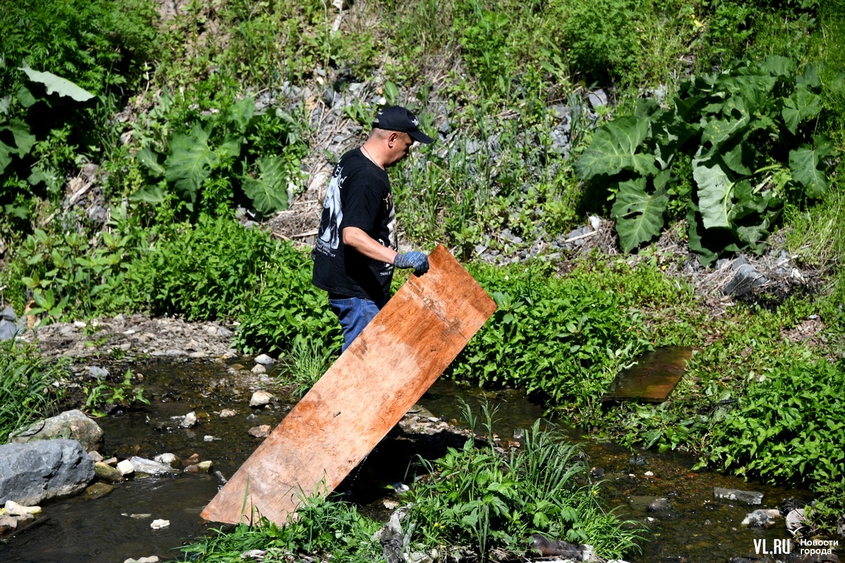 «Мы выбрали эту территорию, потому что здесь находятся два дома, а перед ними – побережье реки: единственное место, где жители могут отдохнуть, – рассказала замначальника АТУ Первореченского района администрации Владивостока Наталья Назарова. – Это военный городок, и при сегодняшней ситуации здесь осталось совсем мало мужчин. И мы решили женщинам сделать приятное, прибраться на территории, которая здесь наиболее востребована».