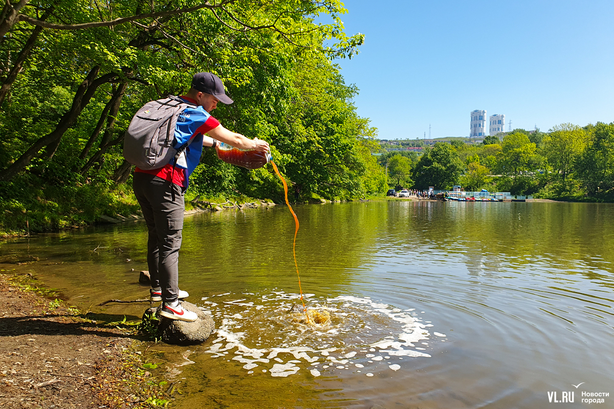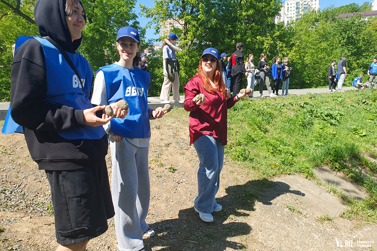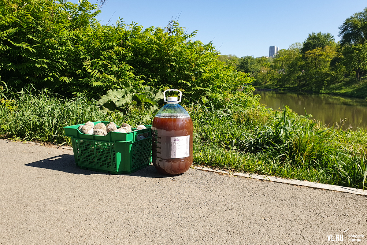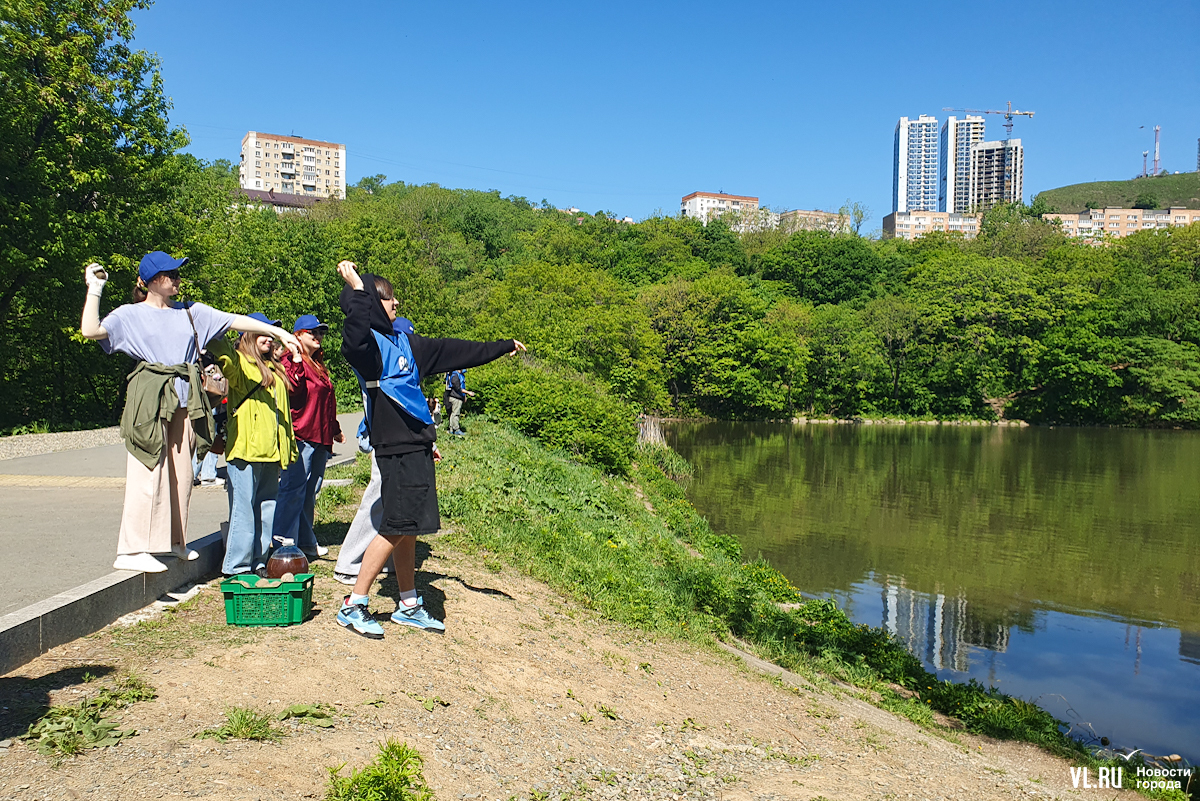 25 мая в парке Минного городка прошла масштабная акция «Чистый десант». Главной задачей стала очистка трёх местных озёр. Для этого использовали ЭМ-колобки и раствор со специальными биодобавками. Эковолонтёры и студенты ВВГУ заранее налепили около пяти тысяч глиняных колобков – пять дней шарики созревали, покрывались белым налётом и черствели. А сегодня их забросили на дно озёр и залили в воду препарат с эффективными биоорганизмами.