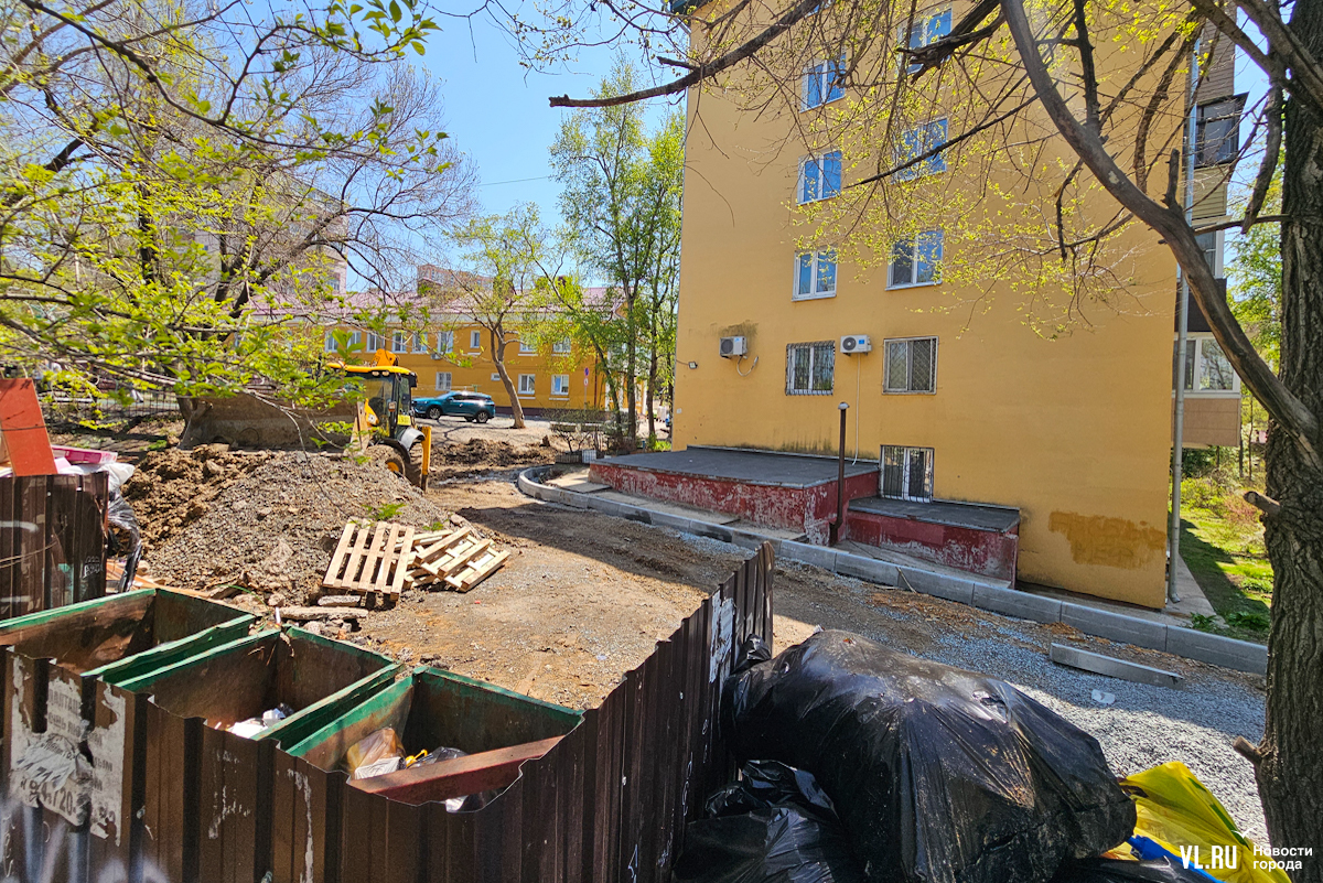 Жители пятиэтажки на улице Днепропетровской во Владивостоке недолго радовались начавшемуся ремонту по программе «1000 дворов». В самый разгар, когда рабочие обновляли площадку для мусорных контейнеров у торца дома, выяснилось, что единственная дорога к ней проходит по территории соседей. А те против мусоровоза, поэтому выезд преградили бетонные блоки. В мэрии предлагают поискать другое место для мусора, но не понятно, как к пятиэтажке будет подъезжать пожарная. На время разборок ремонт двора встал, но даже если и завершится, то точно не таким, как планировался.