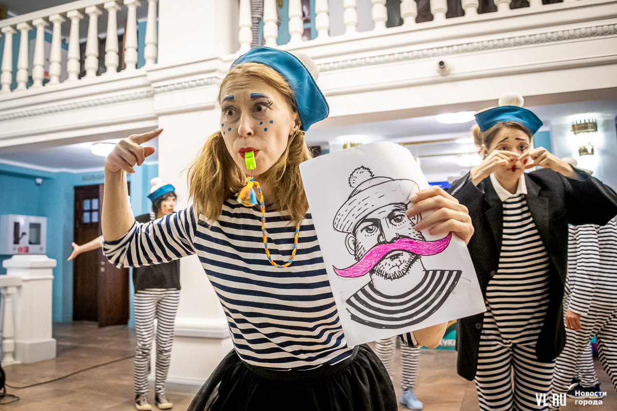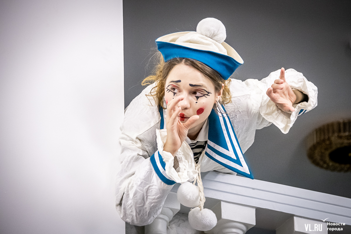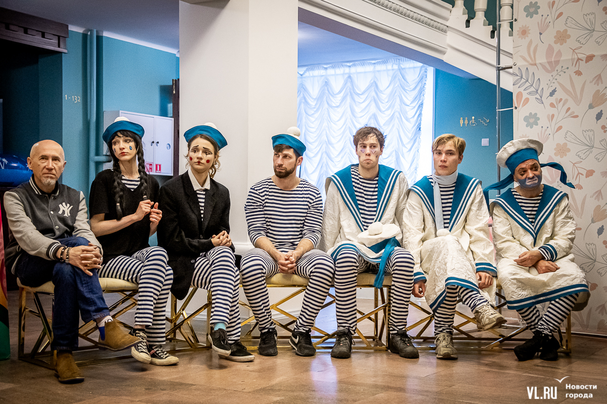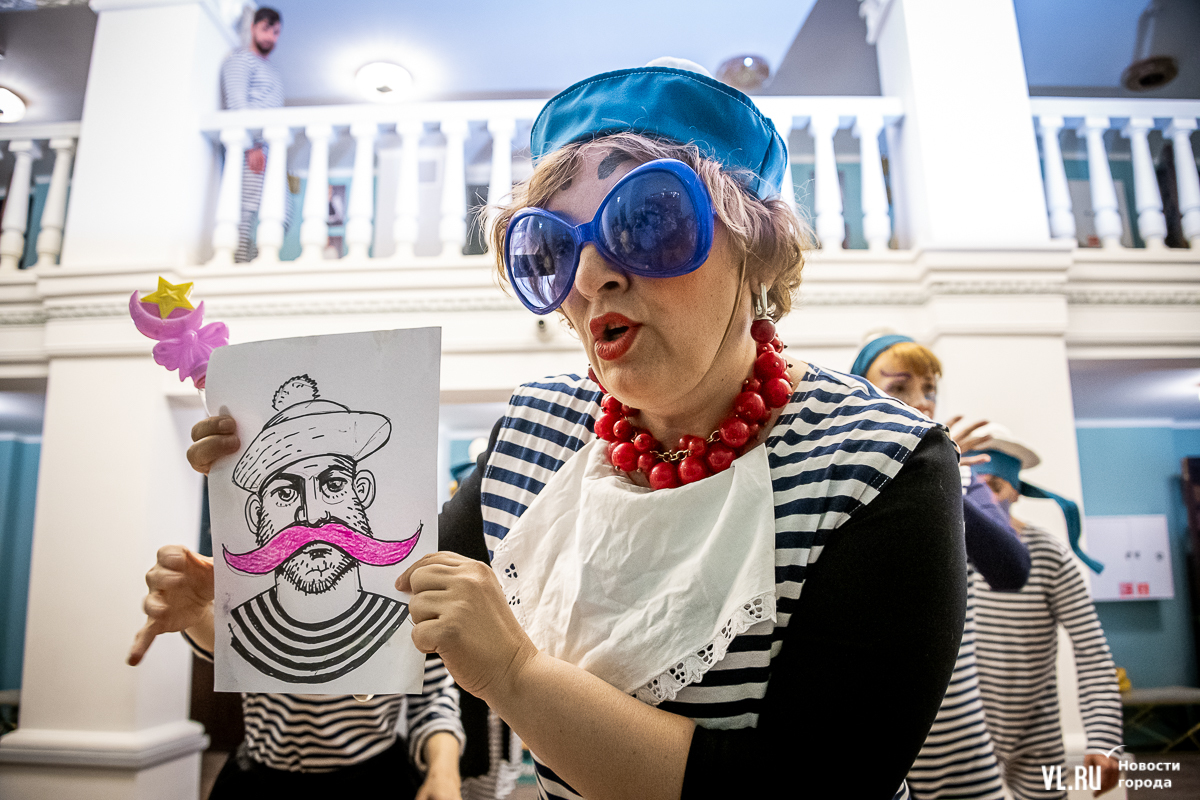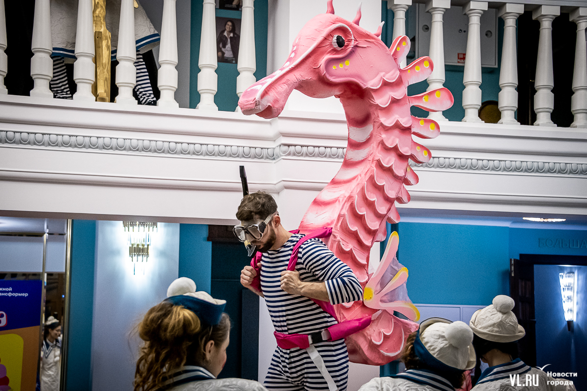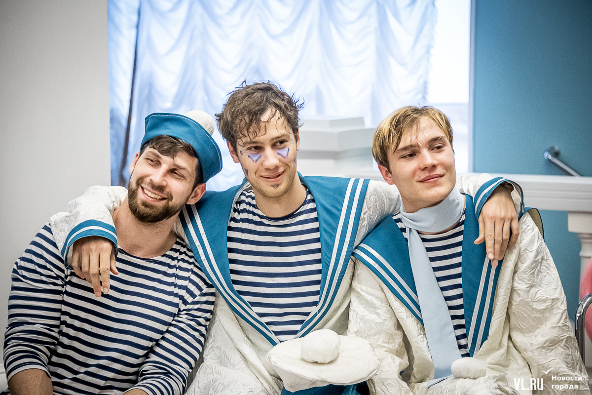 В среду, 29 мая, в Приморском краевом театре кукол прошла презентация уличного спектакля «Колесница радости». Из-за дождя театральное действие перенесли под крышу, но менее зрелищным от этого оно не стало. Горожане смогут увидеть бесплатное представление уже в эту субботу в Адмиральском сквере.