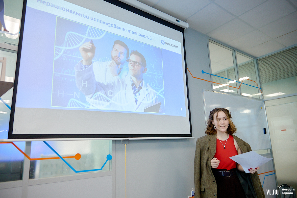 Оценивали проекты Денис Буров, ректор МГУ им. Невельского, Николай Чвертко, директор филиала FESCO во Владивостоке, Татьяна Мельникова, директор Приморского краевого института развития образования. Проект должен содержать оригинальную идею, нести практическую ценность, быть достаточно обоснованным и внятно представленным своим автором, а также иметь отношение к атомной отрасли – на это и обращали внимание члены жюри. Победителями в каждом из направлений стали Матвей Киртаев из Благовещенска, Юлия Каменева из Улан-Удэ и Анна Капитанюк из Фокино.