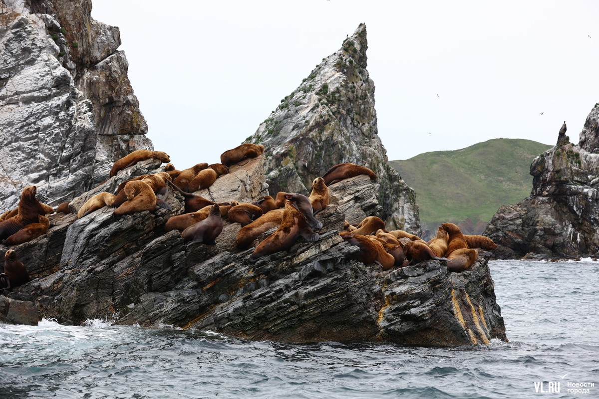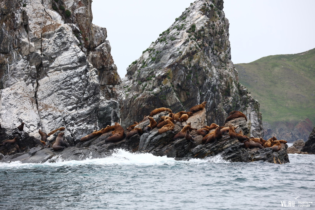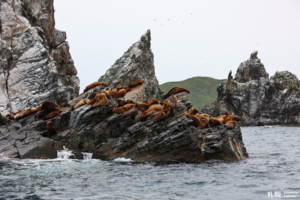 Большая колония сивучей-холостяков облюбовала кекуры Пять Пальцев в юго-восточной части залива Петра Великого возле острова Аскольд. Крупные тюлени здесь, можно сказать, на «мальчишнике» – это молодые самцы, которые ещё набираются сил и веса. Иногда самые смелые доплывают и до Владивостока, но в основном от кекур далеко не уходят.