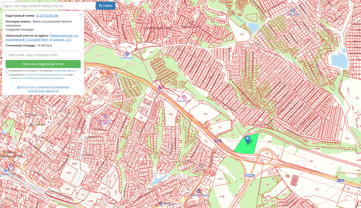 По информации источника редакции, речь идёт об участке 25:10:011300:288, который располагается рядом с развязкой между посёлками Соловей-Ключ и Новый. Обновление 20:45: Согласно выписке из ЕГРН, этот участок с 2021 года находится в собственности у физлица и предназначен под размещение складских площадок. Это один из трёх смежных участков (25:10:011400:222, 25:10:011300:288 и 25:10:011300:289), на которых ранее планировалось построить дилерский центр спецтехники. Представители ООО «Сургут Сервис», которое также арендует более 24 га на Соловей-Ключе, не отрицают свою к ним причастность.