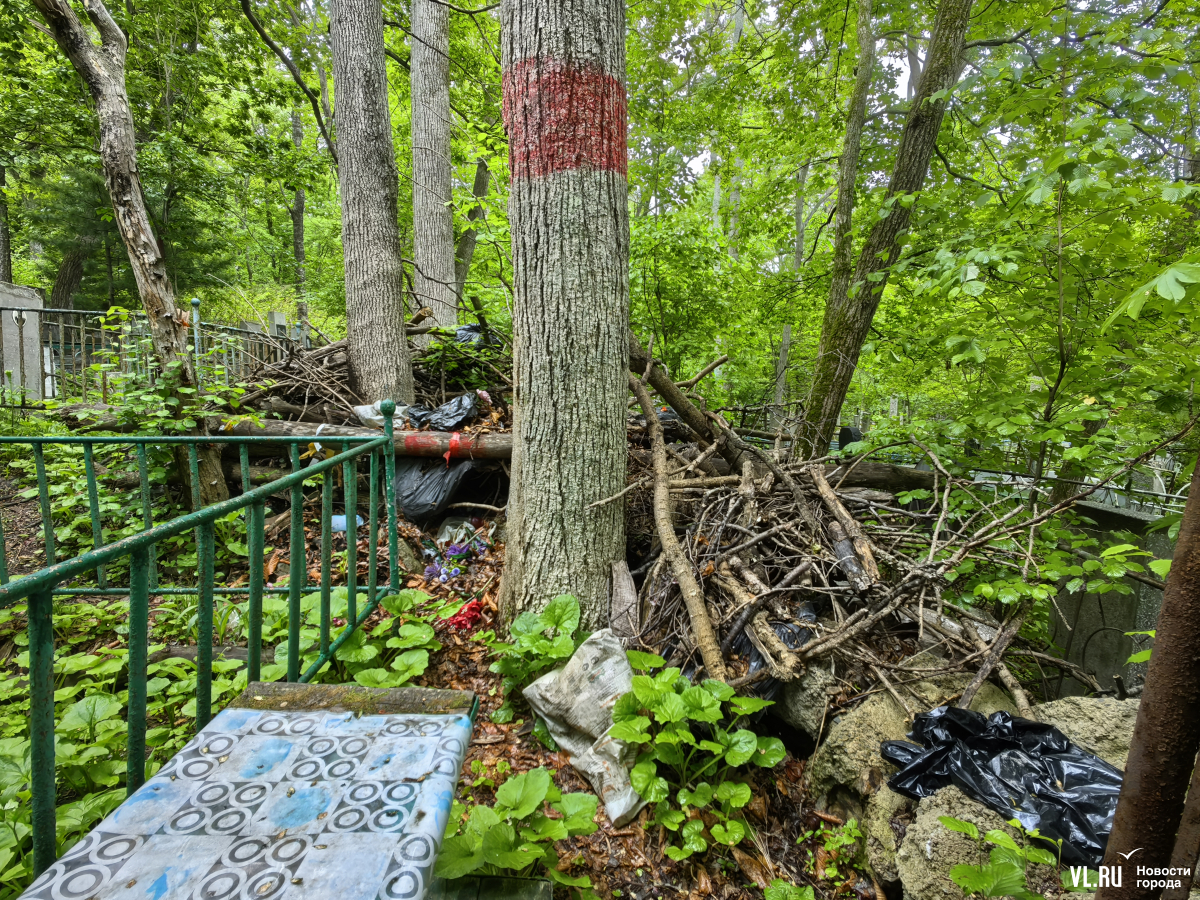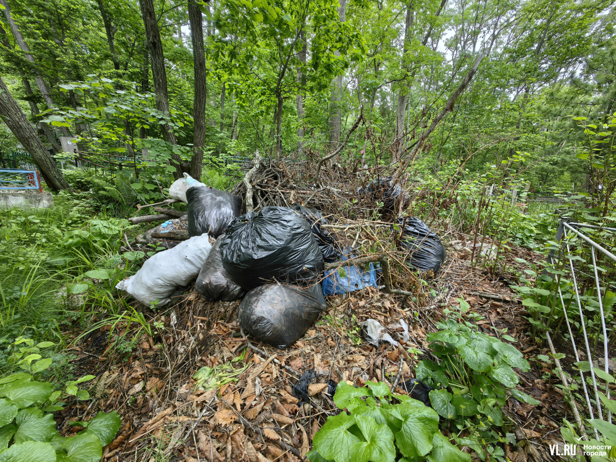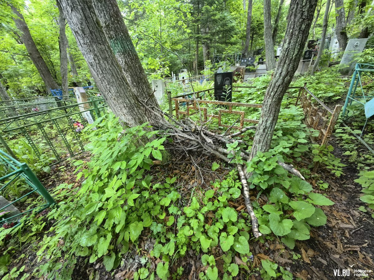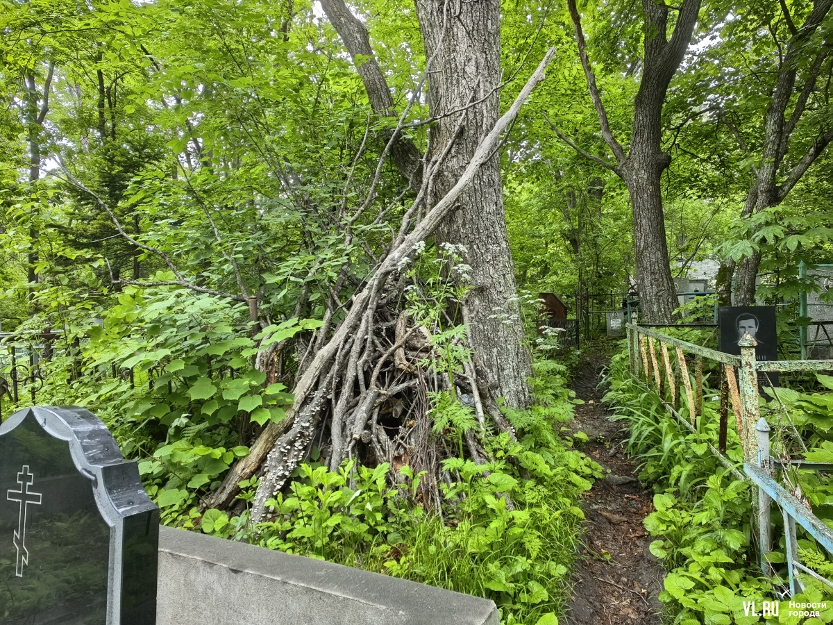 В последнее время руководители Приморья и Владивостока очень полюбили говорить о памяти, преемственности поколений и некоем наследии, которое остаётся после нас детям. Так вот – на Лесном кладбище до сих пор не ликвидировали свалки и горы веток, оставшиеся после «ледяного дождя», но, возможно, появившиеся и раньше. Состояние места упокоения удручает. К началу лета все извилистые тропки между могилами заросли, грунтовые дороги разбиты и размыты, участок возле колумбария просел, а ливнёвки сломаны.