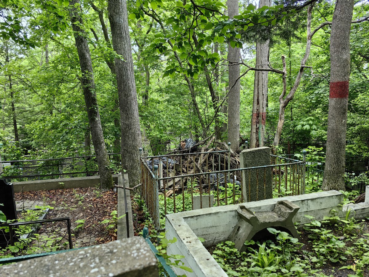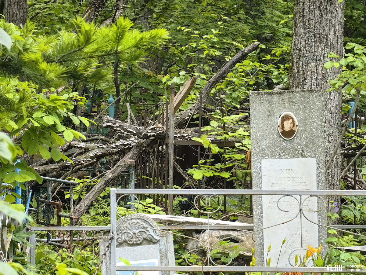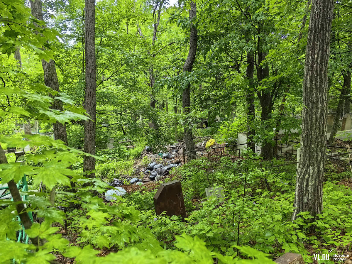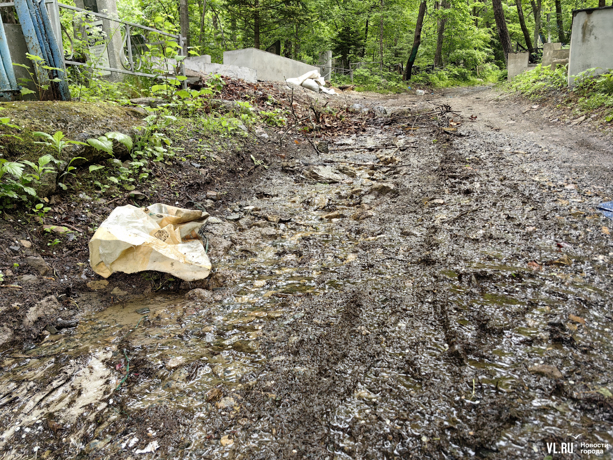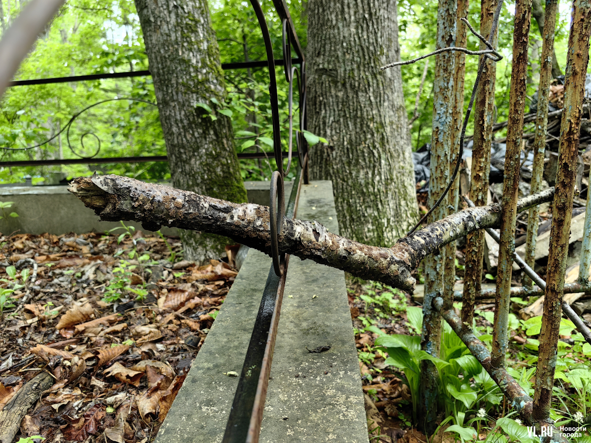 В последнее время руководители Приморья и Владивостока очень полюбили говорить о памяти, преемственности поколений и некоем наследии, которое остаётся после нас детям. Так вот – на Лесном кладбище до сих пор не ликвидировали свалки и горы веток, оставшиеся после «ледяного дождя», но, возможно, появившиеся и раньше. Состояние места упокоения удручает. К началу лета все извилистые тропки между могилами заросли, грунтовые дороги разбиты и размыты, участок возле колумбария просел, а ливнёвки сломаны.