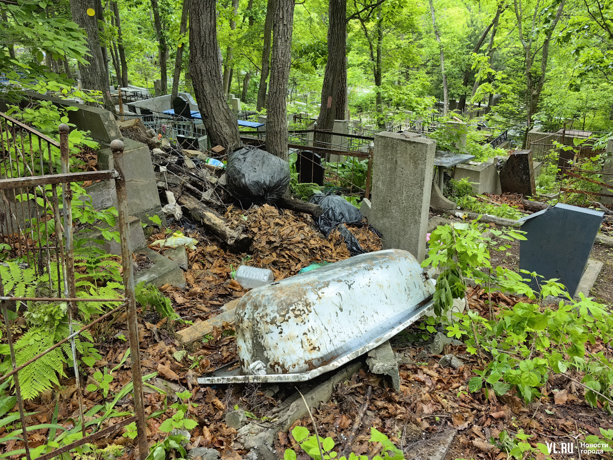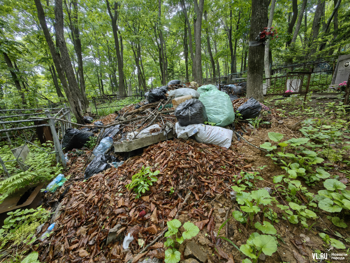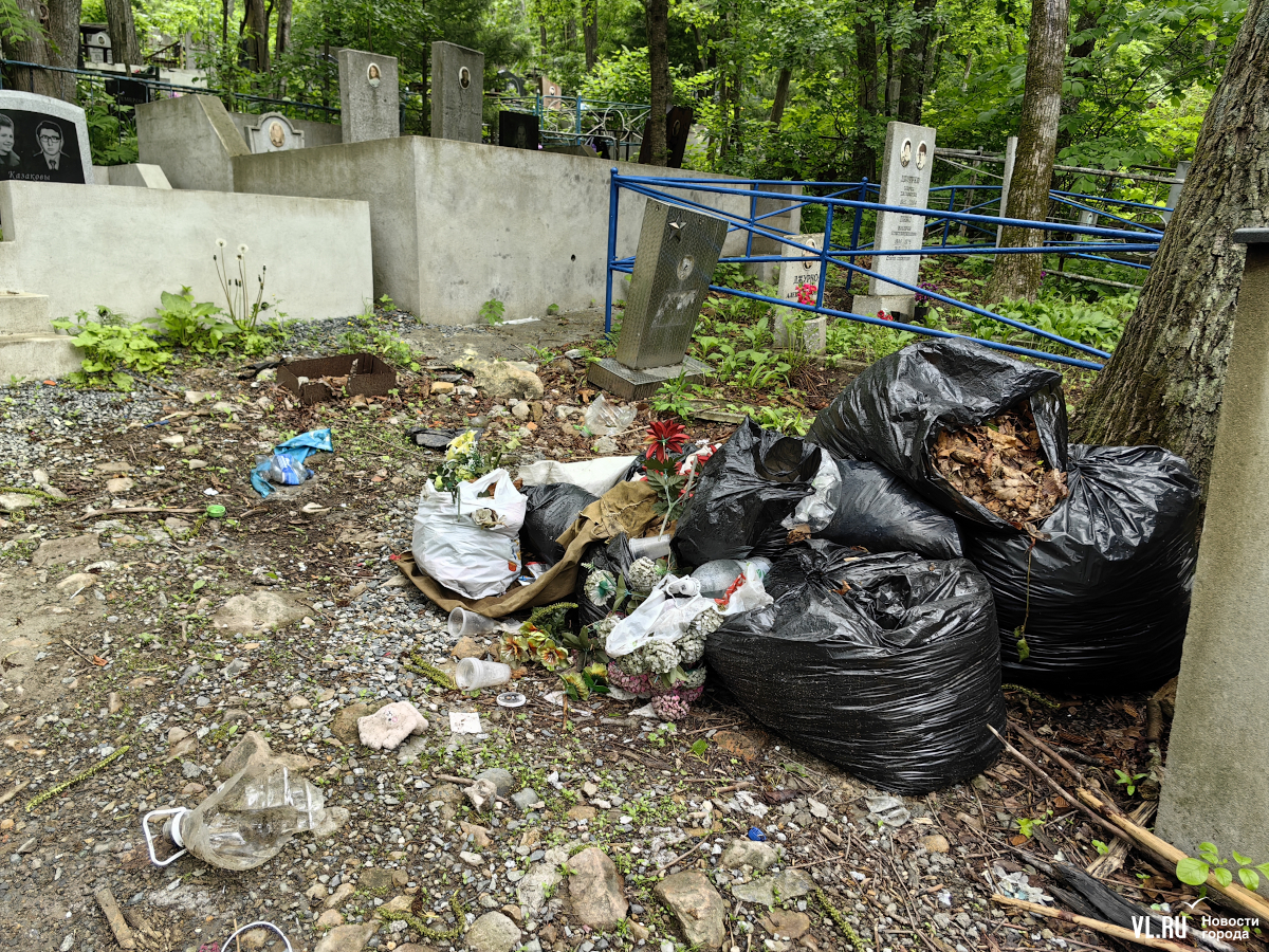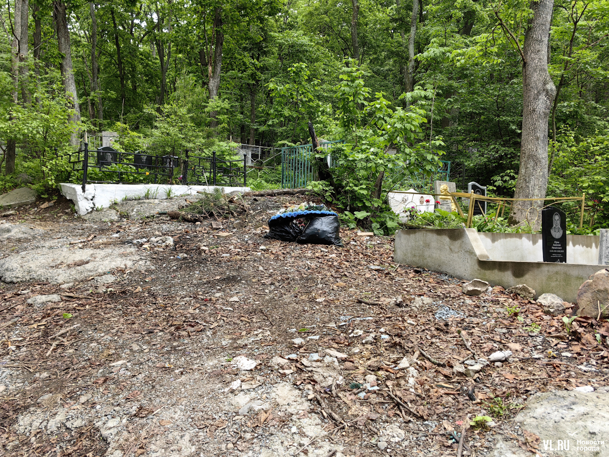 А иной раз посреди даже вполне приемлемого прохода внезапно появляется свалка. И они остаются здесь годами. Одну и ту же картину мы видим в одних и тех же местах в 2022 году, в 2023-м, да и сейчас. В администрации Владивостока утверждают, что ухаживать за могилами должны родственники. Но за территорией кладбища-то нет. В личном разговоре работники кладбища говорят, что готовы организовать вывоз мусора, но за деньги. Не факт, кстати, что эти деньги потом отразятся в документах.