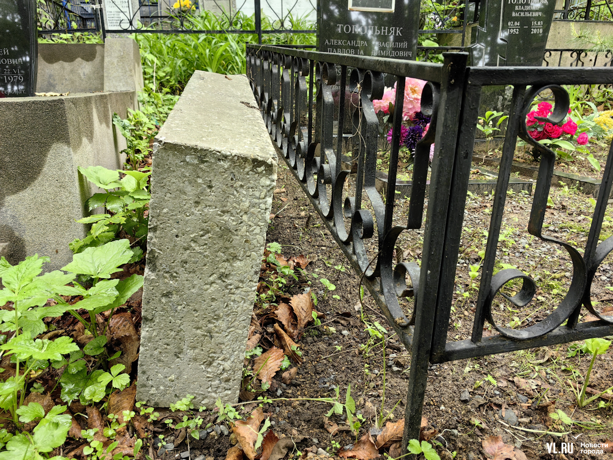 Мусор, возможно, частично бросают и посетители. Их тоже можно понять – выносить со своего участка даже один большой пакет с теми же сорняками и палыми листьями и тащить его через всё описанное выше может позволить себе не каждый силач. Но корреспондент Новостей VL.ru обнаружил могилу, где несколько лет назад был установлен новый памятник – а старый лежит рядом, за оградкой. Вряд ли родственники усопших устанавливали его своими руками. Значит, бросили рабочие – и так сойдёт.