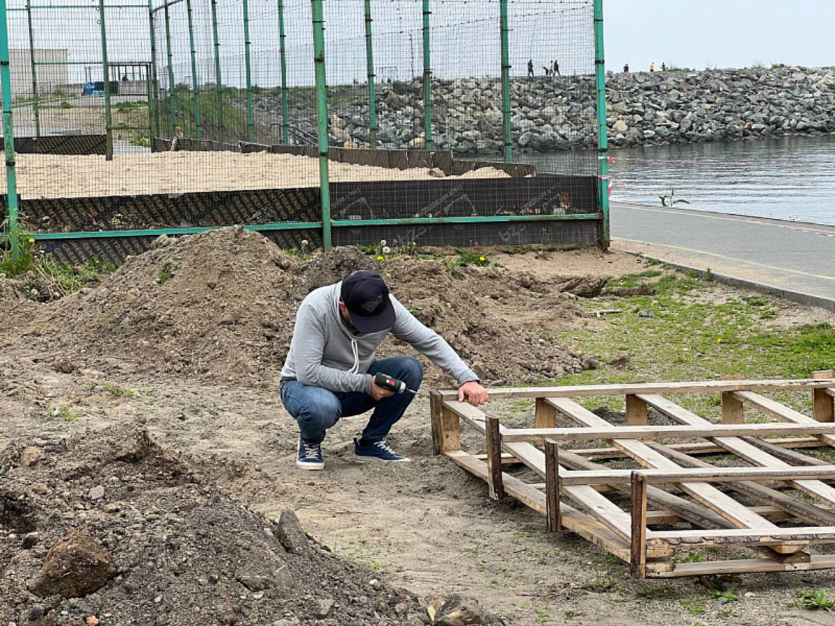 «Также нам предстоит установить бордюр, потому как предполагается поднять высоту площадки на 20 сантиметров, обустроить дорожку от лестницы, завезти песок и создать новый арт-объект на стене. Открыть площадку планируем этим летом», – подчеркнул участник сообщества «PRO жизнь» Николай Макрак.