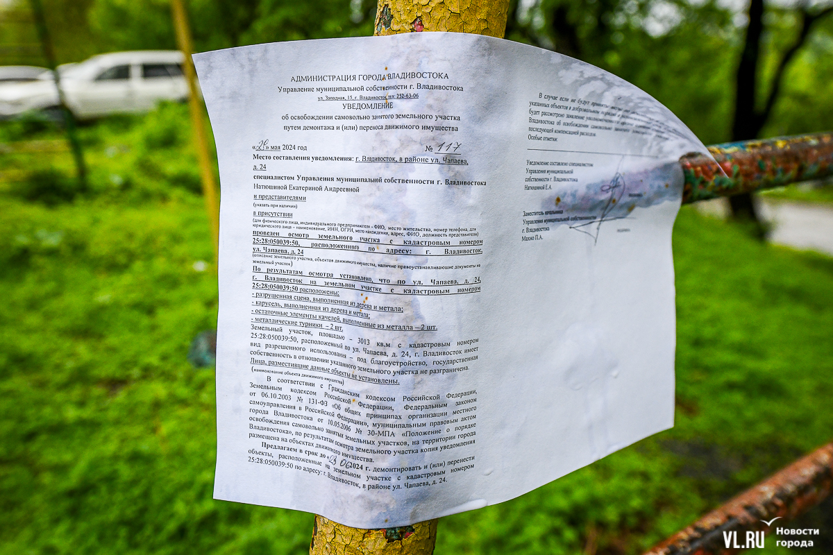 29 мая на сайте администрации Владивостока появилась информация о самовольно установленных объектах на участке с кадастровым номером 25:28:050039:50, расположенном по адресу: Чапаева, 24. Среди них полуразрушенная сцена из дерева и металла, карусель, остаточные элементы качелей и металлические турники. Все эти «объекты» объединяются в обычную детскую площадку, на которой десятки лет играют соседские дети. Но куда интересней оказалась история земельного участка под ней.