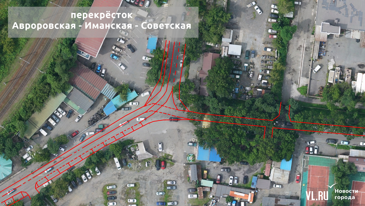 В обратную сторону, от Иманской до Океанского проспекта, картина примерно та же: сперва одна полоса, а от угла ТЦ «Игнат» дорога расширится до двух: одни поедут в сторону Первой Речки, другие – к Покровскому парку. Кстати, со стороны «реновируемого» частного сектора тоже появится тротуар.