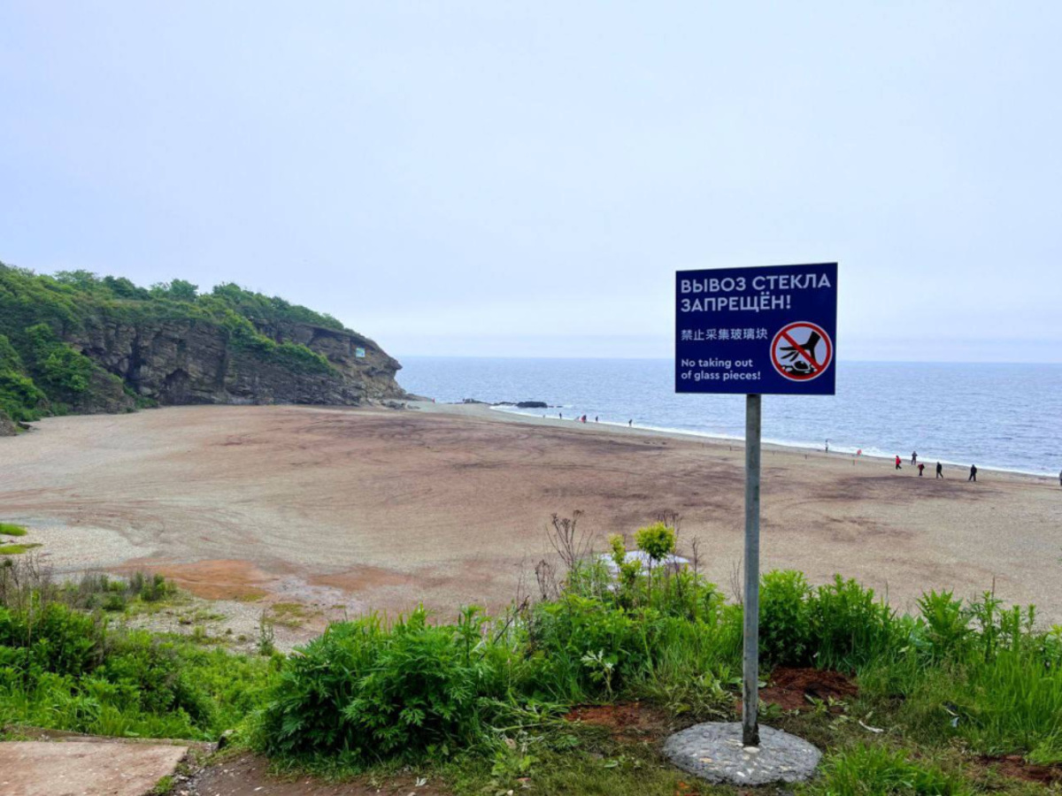 «Вывоз стекла запрещён», «Не выносить кусочки стекла», «Запрещается собирать стеклянные блоки». На побережье бухты Стеклянной установили информационные таблички для туристов на русском, китайском и английском языках.