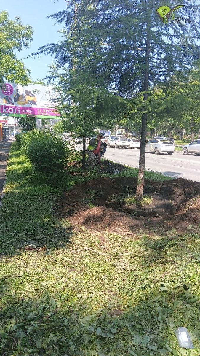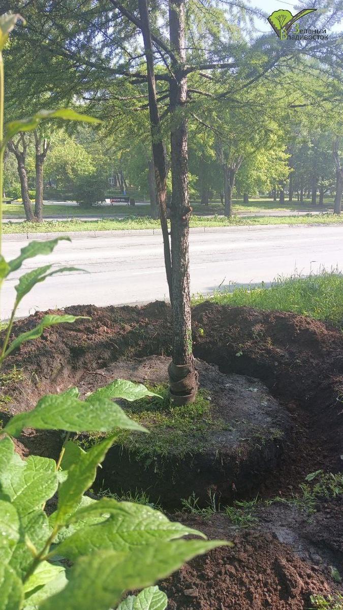 «Поскольку лиственницы на Русской были уже в полном роспуске и сезон для пересадки не совсем подходящий, [деревьям потребовалась предварительная подготовка]. За неделю до начала пересадки была подкопана корневая система и сформирован большой земляной ком. Также мы пролили растения «Цирконом» и только через неделю приступили к пересадке с техникой», – рассказали в «Зелёном Владивостоке».