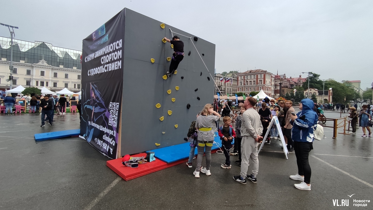 В центре площади выросли маяк, как на Токаревской кошке, и стена для скалолазания. Здесь же студенты художественного колледжа рисуют портреты всех желающих.