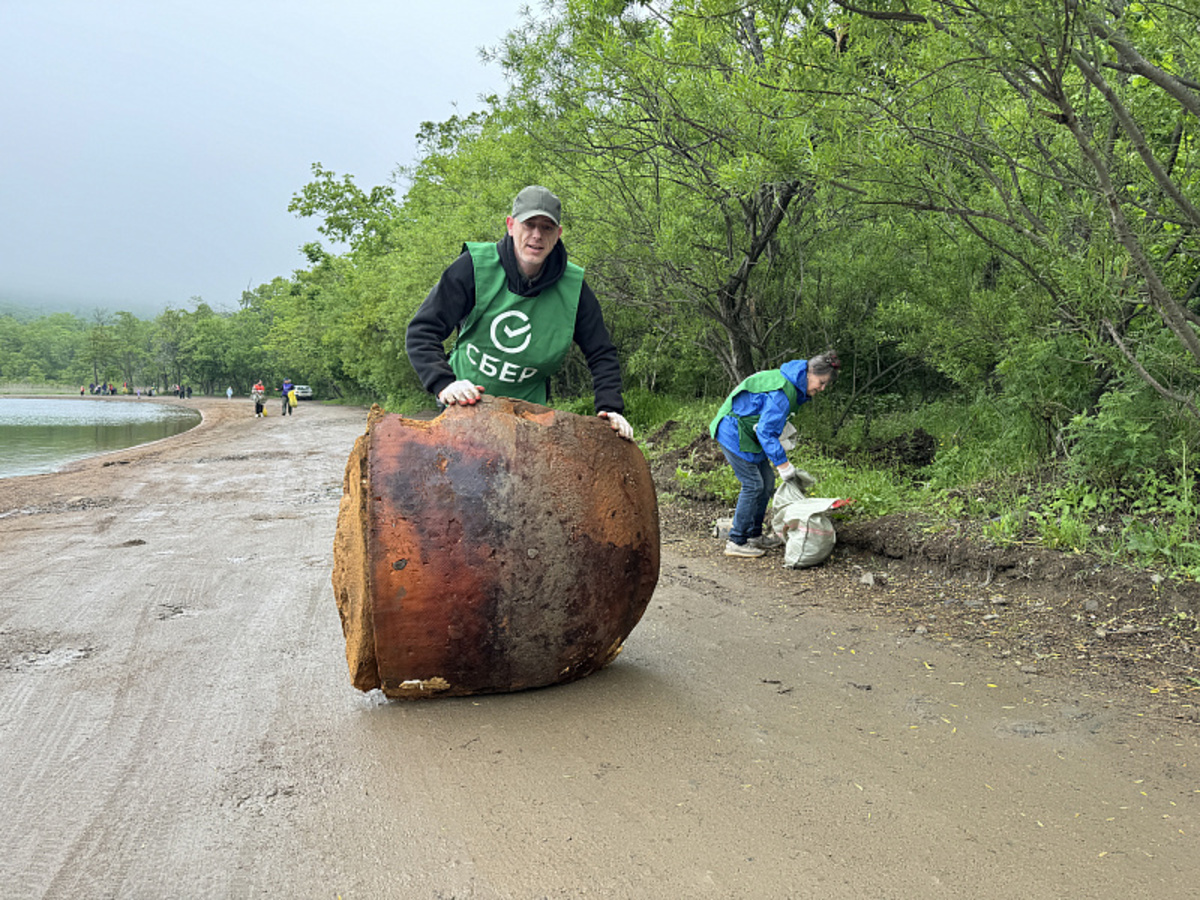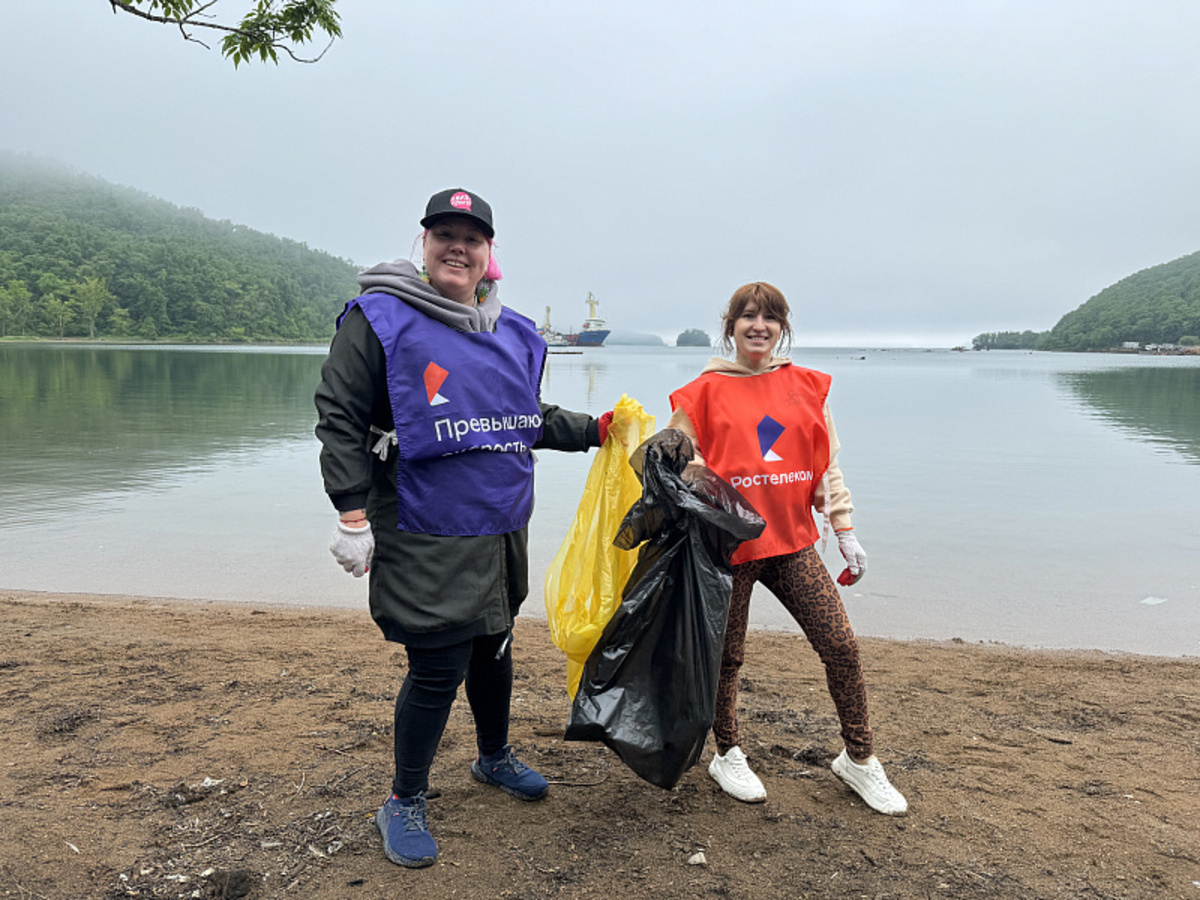 Сотрудники компаний «Ростелеком», Сбербанк, «Росбанк», РЖД и FESCO совместно навели порядок на побережье бухты Труда. Результат – почти тонна собранных отходов.