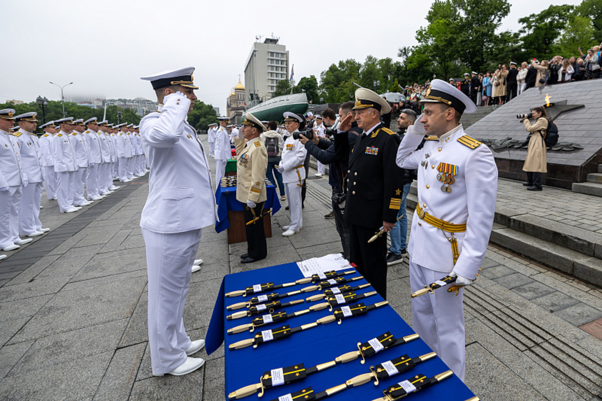 В субботу, 15 июня, у мемориала «Боевая слава Тихоокеанского флота» во Владивостоке выпускникам 2024 года Тихоокеанского высшего военно-морского училища имени Макарова вручили дипломы и присвоили звания. В торжественной церемонии производства в офицеры и мичманы выпускников 81-го выпуска ТОВВМУ приняли участие глава Владивостока Константин Шестаков, командующий Тихоокеанским флотом адмирал Виктор Лиина, начальник ТОВВМУ Сергей Собокарь, представители государственных организаций.
