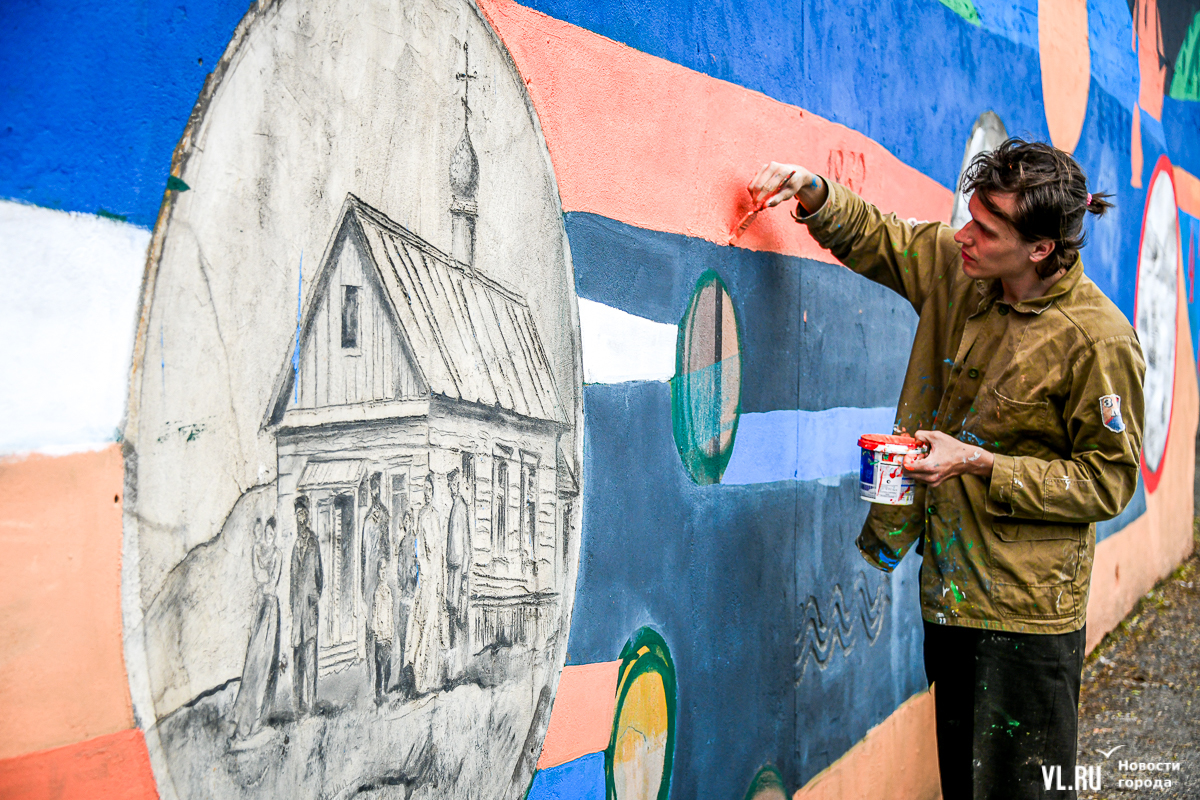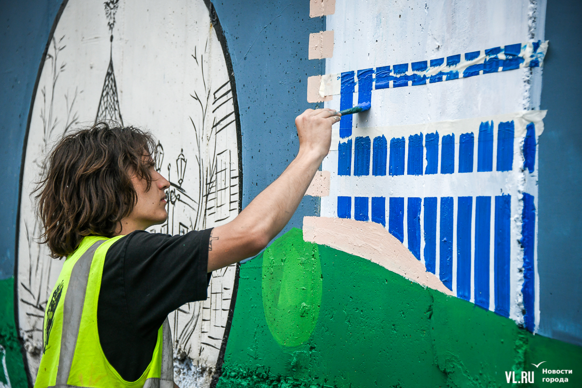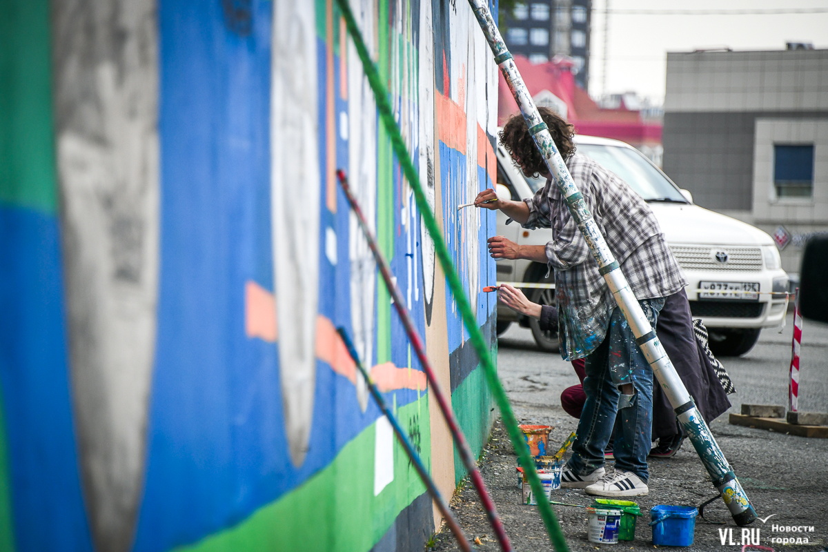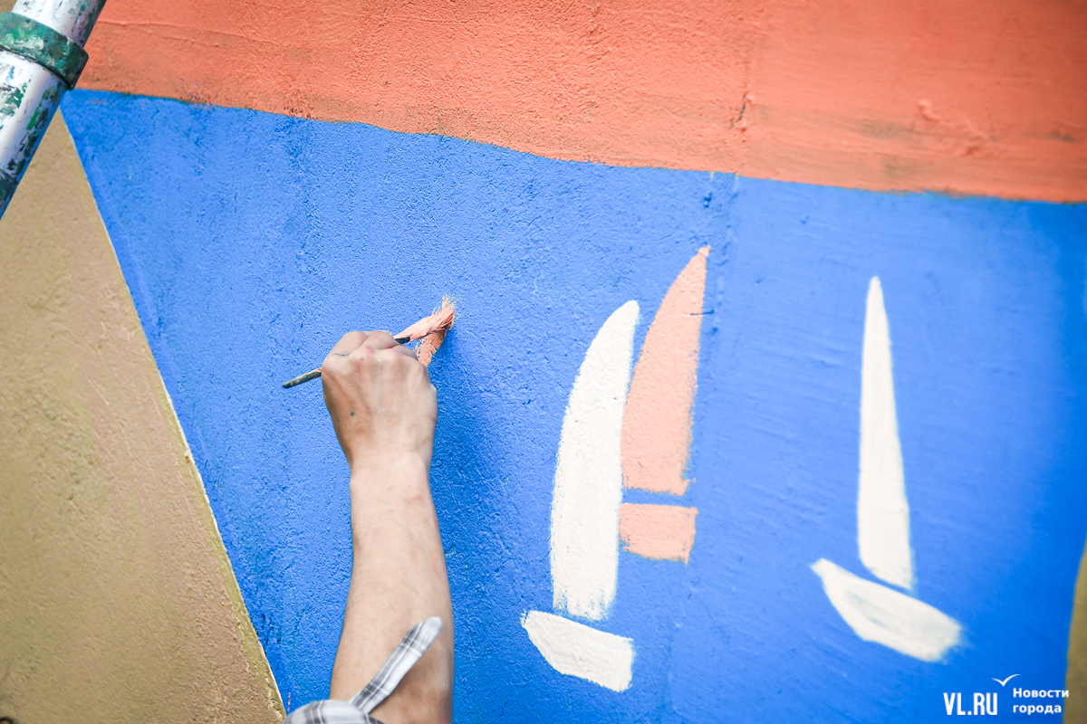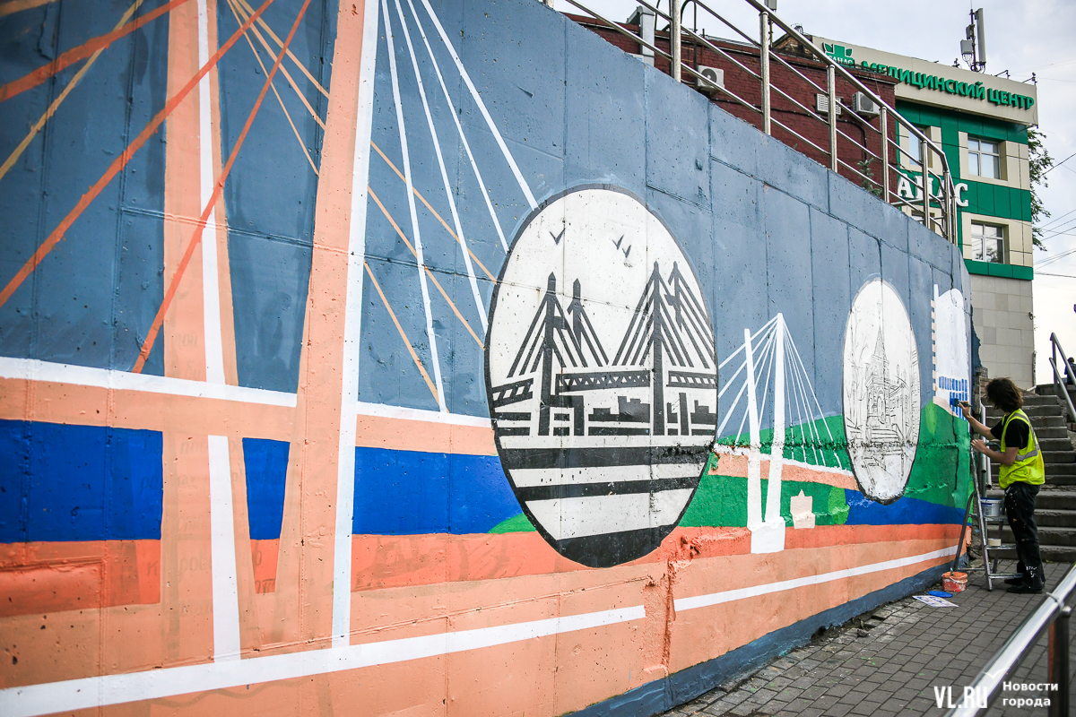 Во Владивостоке заканчивают обновление росписи подпорной стены в районе кольца Инструментального завода на Партизанском проспекте. Художники арт-группы «33+1» по заказу расположенной здесь гостиницы Novotel восстановили барельефы на историческую тематику, сделанные художественным объединением «Квадролампа» 8 лет назад, и дополнили их образами современного города – домами, парусниками, сопками, чайками.