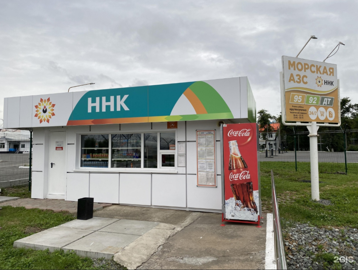 Единственная на весь город рабочая АЗС с бензином и дизелем для катеров находится на Русском острове. Она представляет собой плавучую заправку в акватории бухты Новик, за старым причалом бывшей паромной переправы. На табличке с режимом работы – эмблема НК «Уссури», однако корреспонденту в организации сказали, что к морской заправке отношения не имеют.