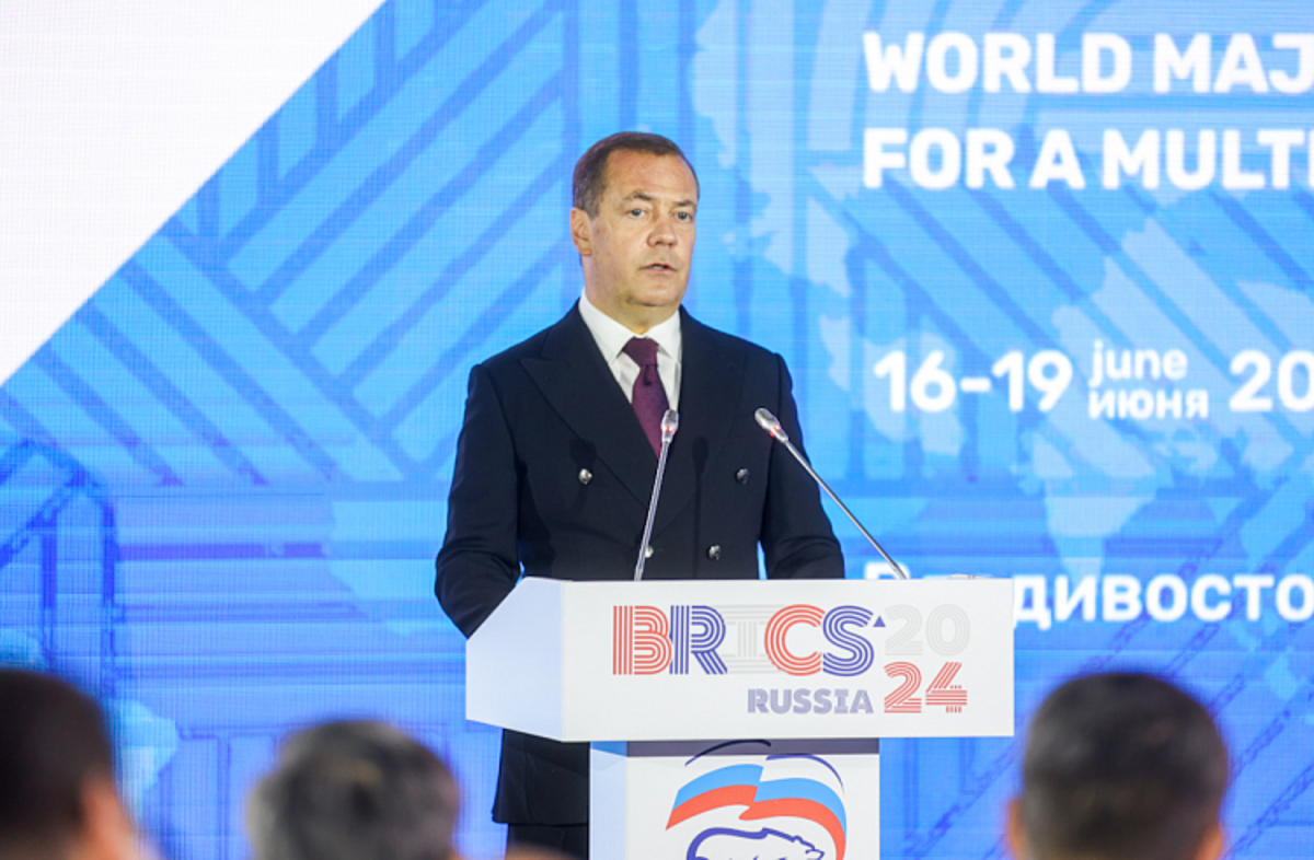 Международный межпартийный форум БРИКС открылся в понедельник, 17 июня, во Владивостоке. Для участия в нём в город прибыл заместитель председателя Совбеза РФ Дмитрий Медведев, а также представители 32 иностранных государств.