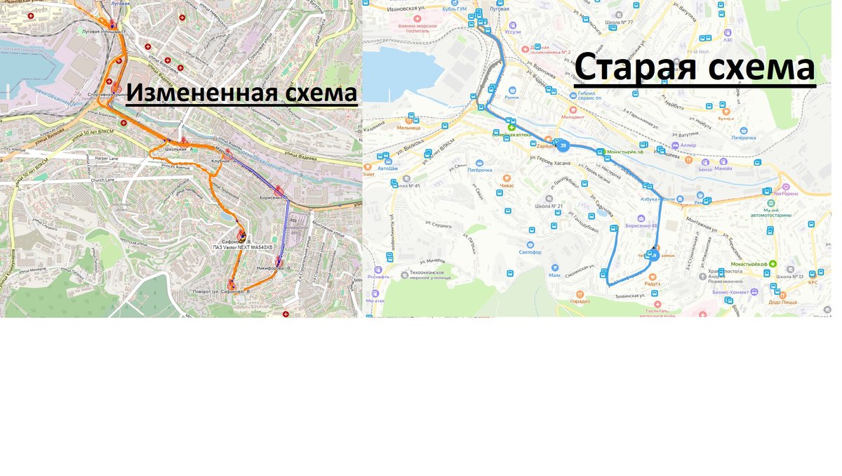 В связи с проведением работ по ремонту тепловой сети автобусы, следующие по маршрутам № 39 и 39д, после остановки «Спортивная» будут сворачивать на улицу 40 лет ВЛКСМ, затем на Героев Хасана до остановки «Сафонова». От конечной «Сафонова» они двигаются до остановки «Никифорова» (место перекрытия), после чего разворачиваются и движутся в обратном направлении по Сафонова, выезжая на Борисенко возле остановки «Клубная».