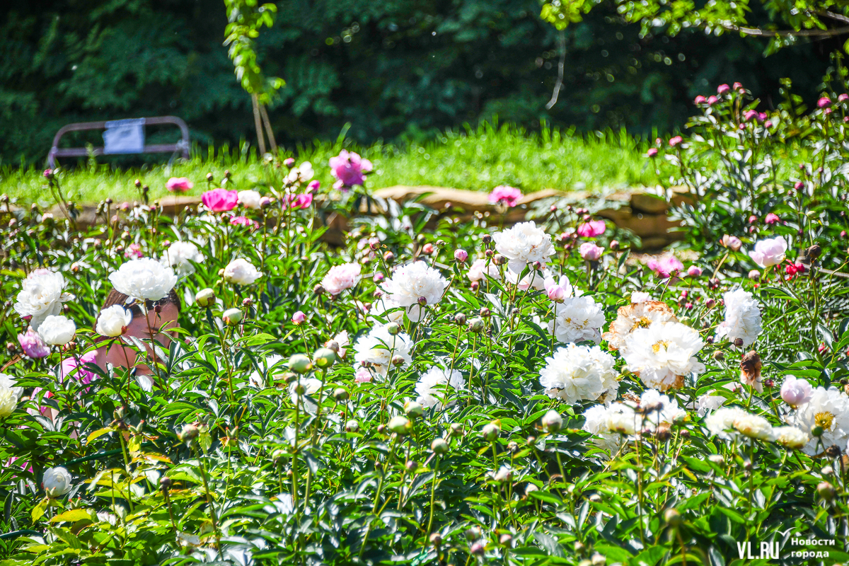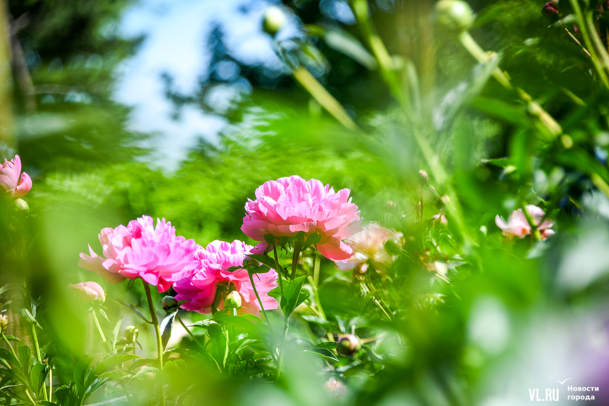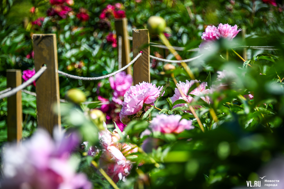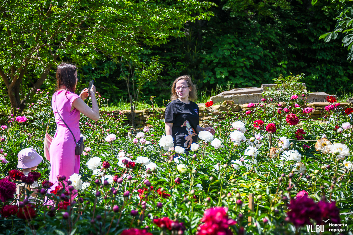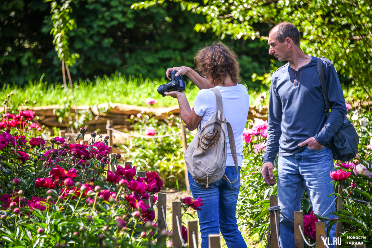 «Пионовый» сезон начинается с середины мая, а на июнь приходится пик цветения. К объёмным бутонам словно пчёлы слетаются жители Владивостока – кто-то просто любуется, кто-то фотографирует.