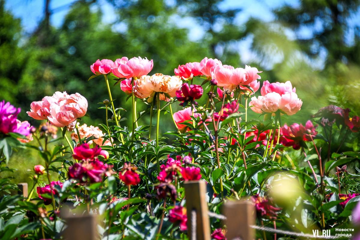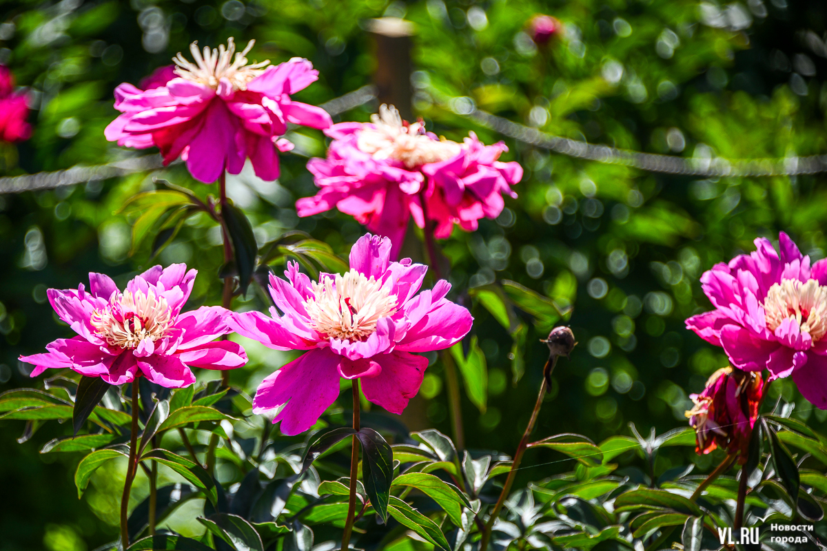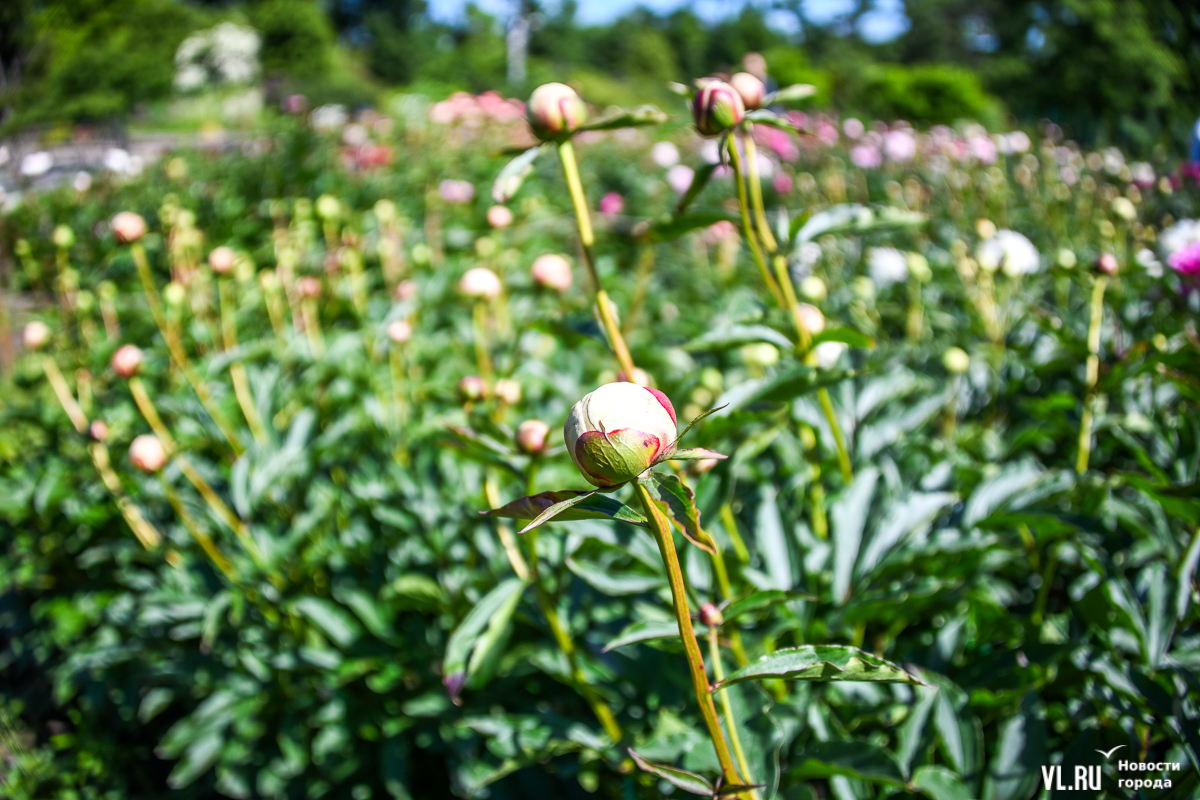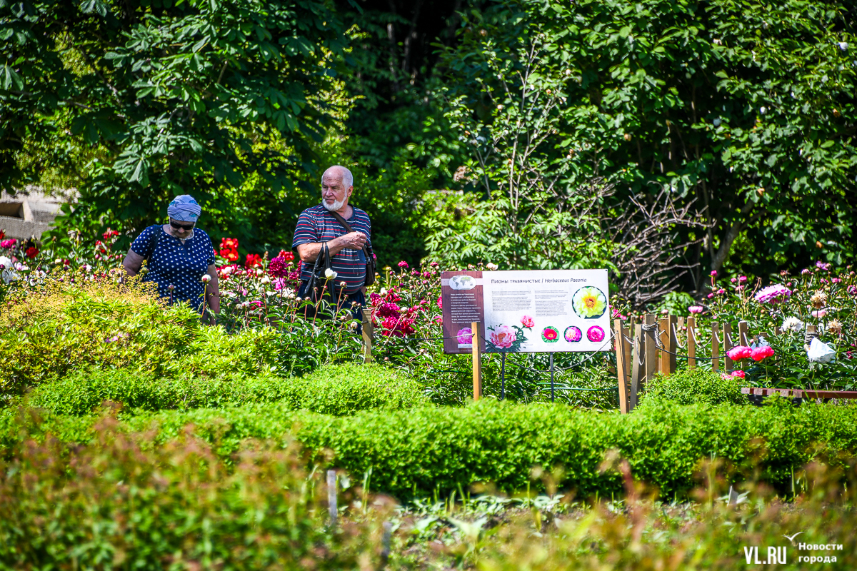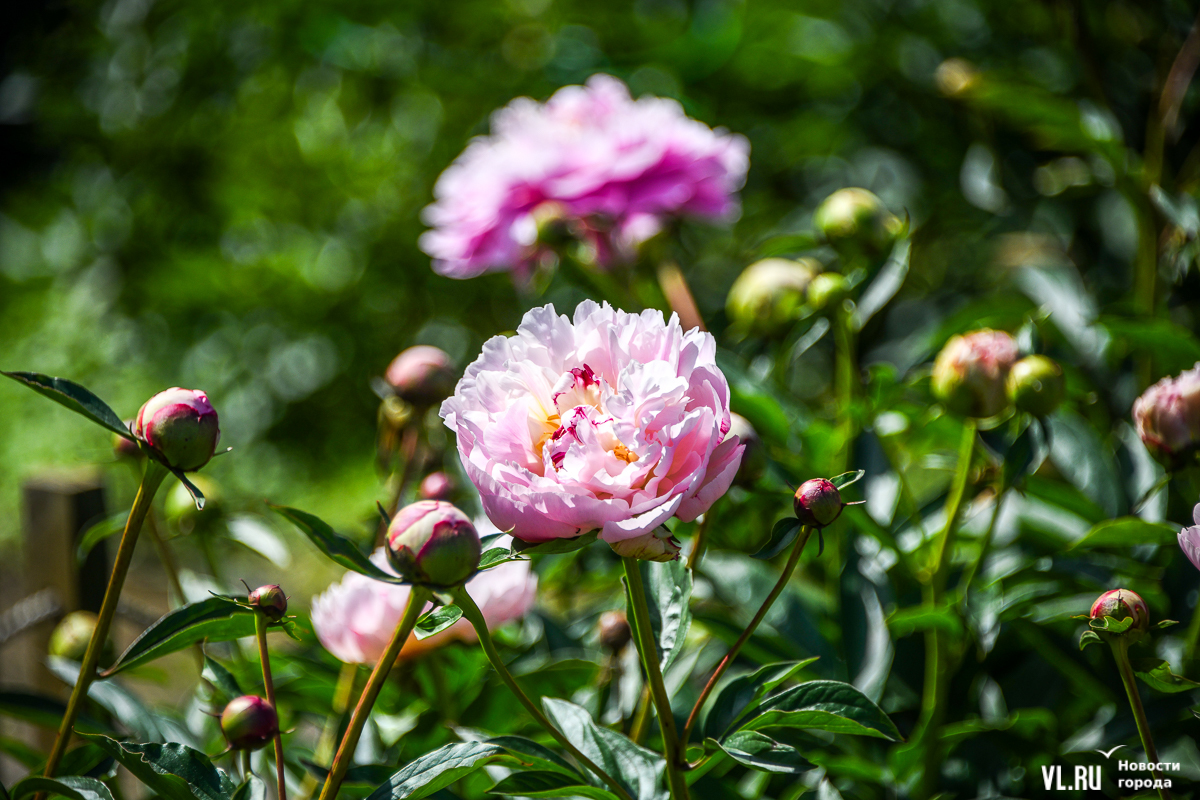 «Пионовый» сезон начинается с середины мая, а на июнь приходится пик цветения. К объёмным бутонам словно пчёлы слетаются жители Владивостока – кто-то просто любуется, кто-то фотографирует.