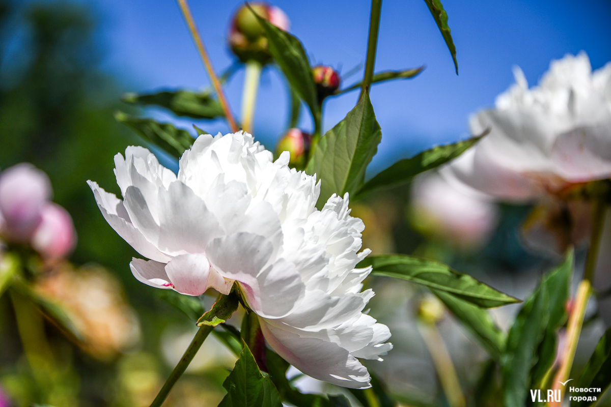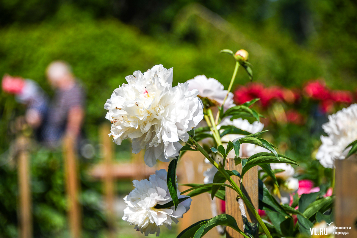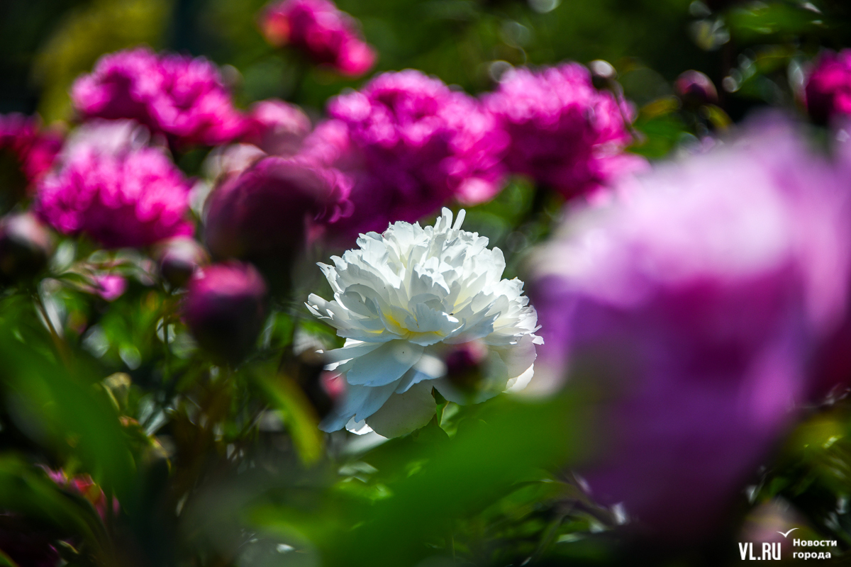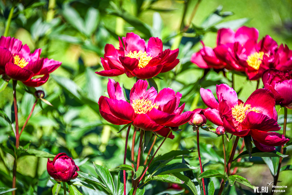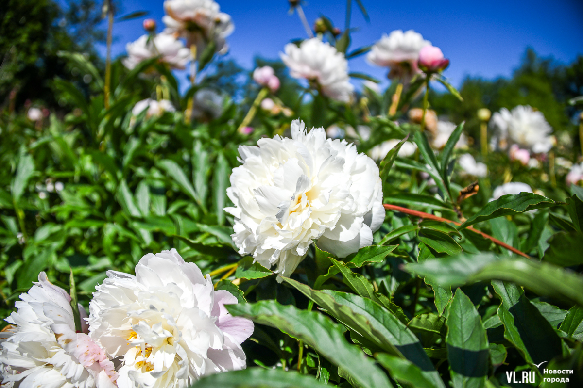 «Пионовый» сезон начинается с середины мая, а на июнь приходится пик цветения. К объёмным бутонам словно пчёлы слетаются жители Владивостока – кто-то просто любуется, кто-то фотографирует.