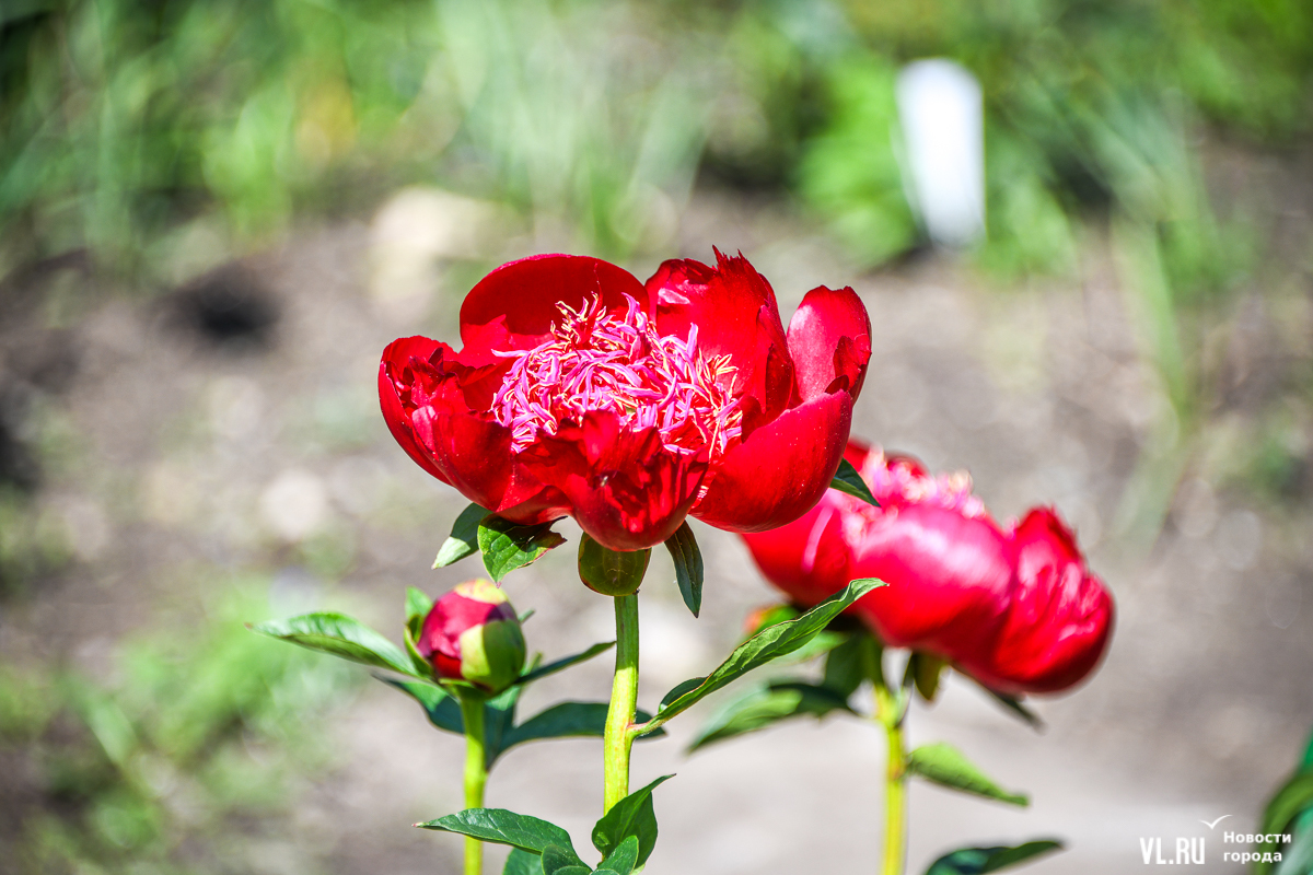 Основных угроз у пионов, обитающих в Ботаническом саду Владивостока, две – это дождливый июнь и гости, которых в порыве сфотографироваться ничего не может остановить. Из-за этого вытаптываются корни, цветы страдают и даже погибают. В итоге коллекционные участки приходится огораживать от любопытствующих.